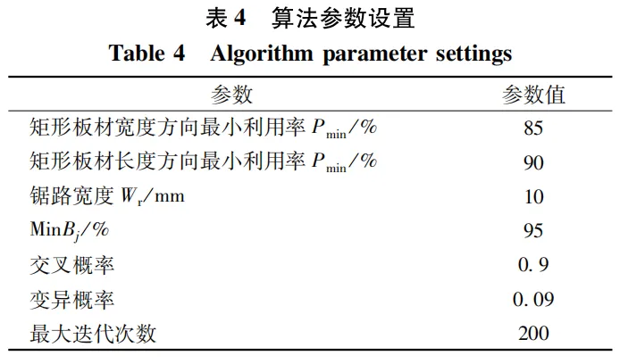 式中:Wi为矩形零件的宽度; Li为矩形零件的长度; N为矩形零件的数量; Wr为锯路宽度; W为矩形板材区域的宽度。