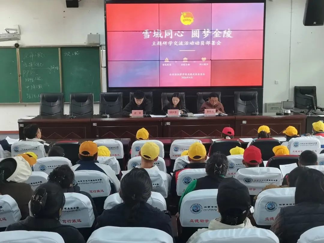 为大力推进我区青少年与内地青少年交流交往交融,强化青少年民族团结意识与爱国情怀,加强思想引导和关心关爱,开拓青少年视野、增长见识,扎实推进“雪域同心,圆梦金陵”主题研学交流活动有序开展,4月7日,团堆龙德庆区委在堆龙德庆区第一初级中学组织召开动员部署会。会议由团区委副书记尼玛次吉主持,区教育团工委书记边巴次仁出席,外出研学师生及家长代表共计60余人参加。