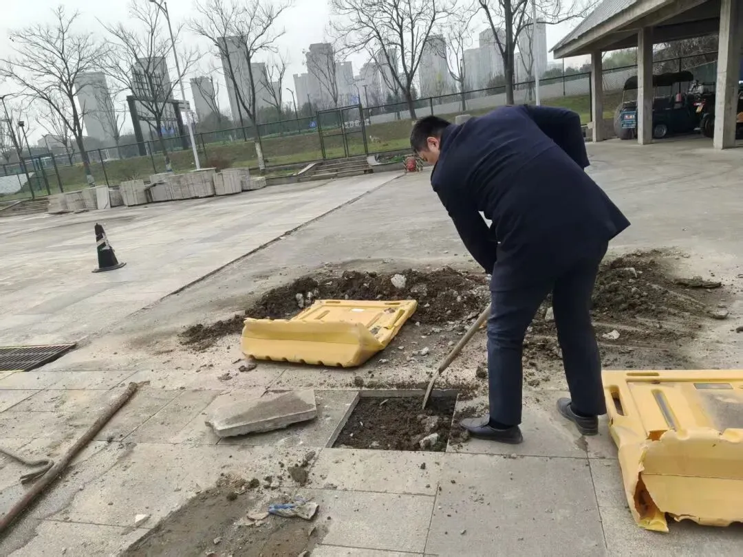 4、3月,现场跟进裙楼4层室外后广场路面砖维修、更换工作;