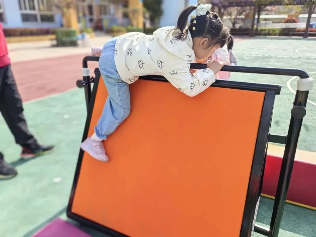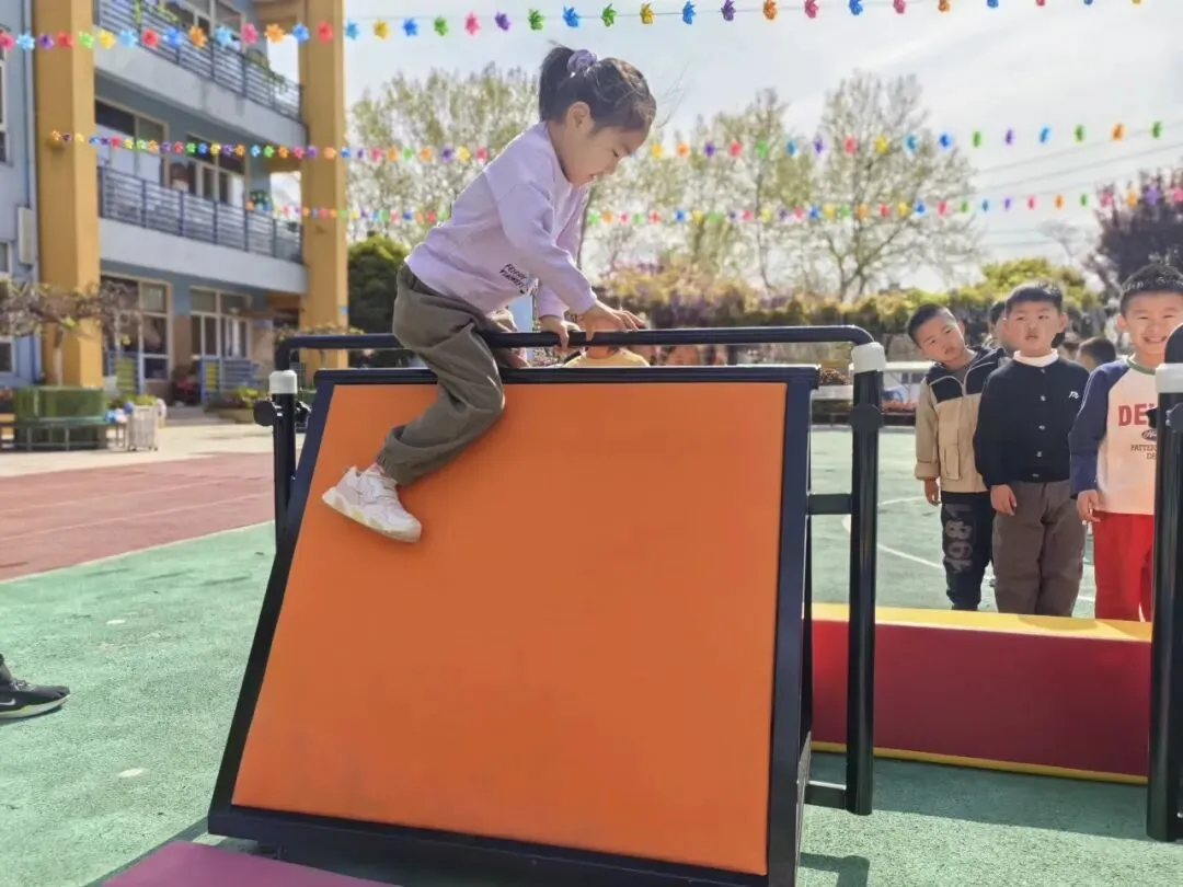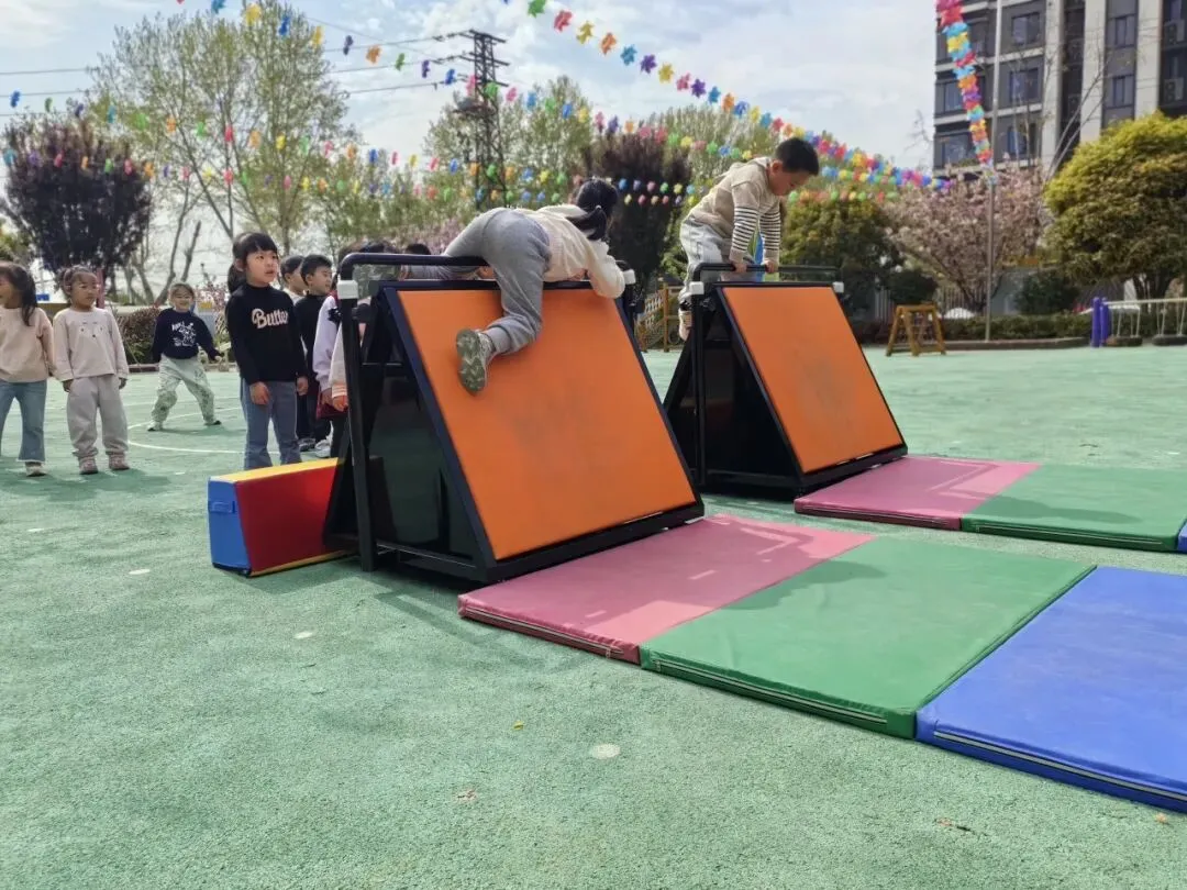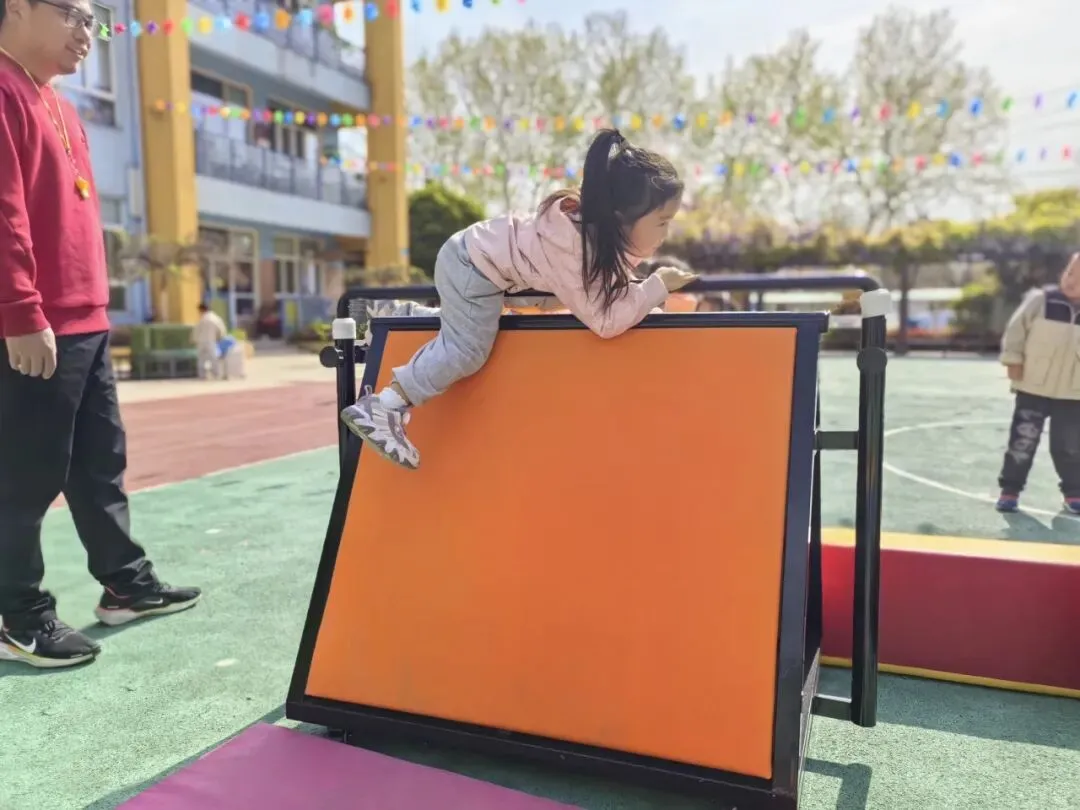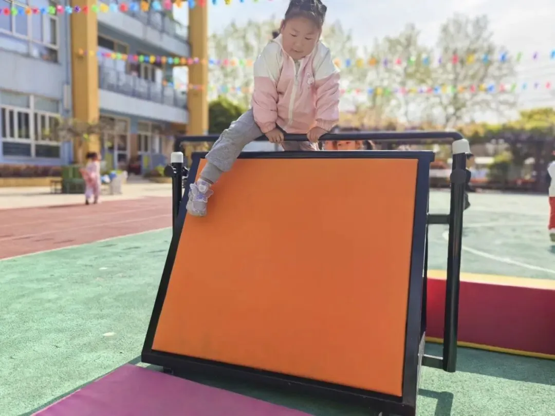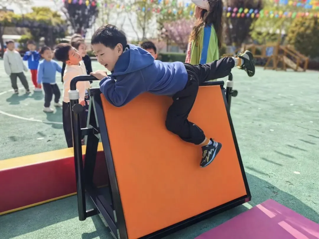 最激动人心的终极挑战来啦!孩子们要完成“翻A字板+猫挂”的连续动作!先稳稳翻过A字板,再迅速切换成猫挂姿势,一气呵成,真的超帅气,虽然有点小卡顿的孩子也不放弃,在老师和小伙伴的鼓励下坚持完成,每一位都是勇敢的小勇士!