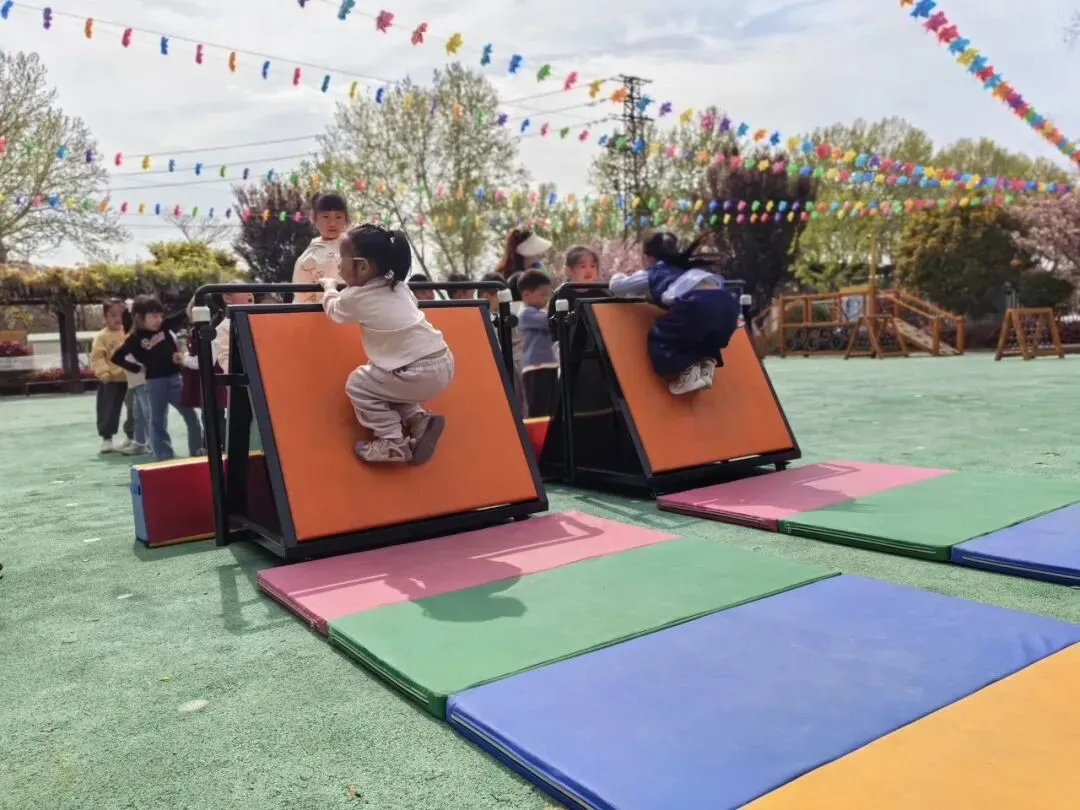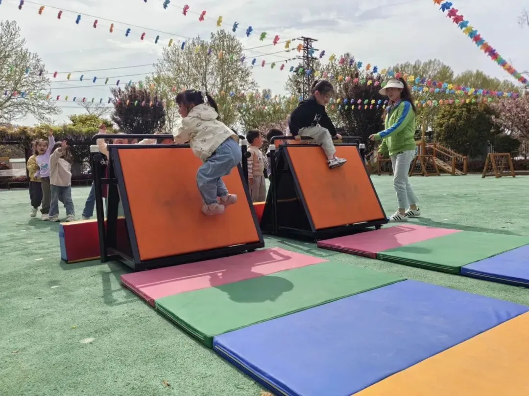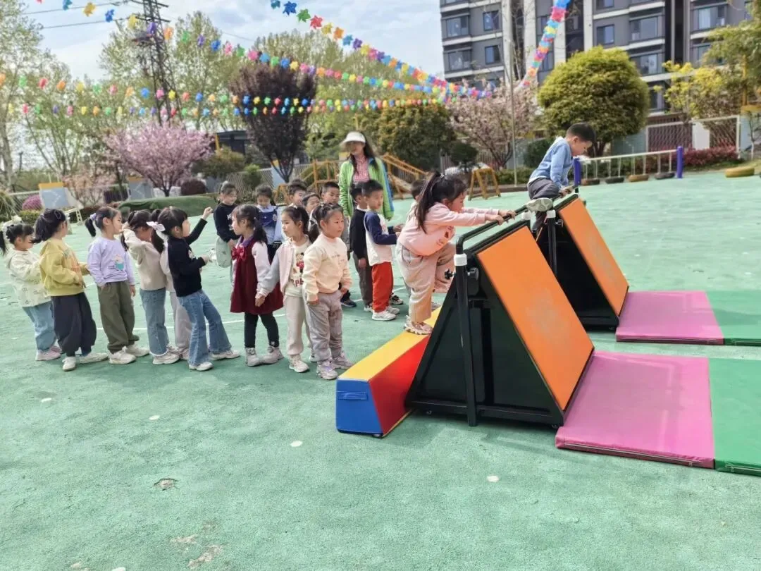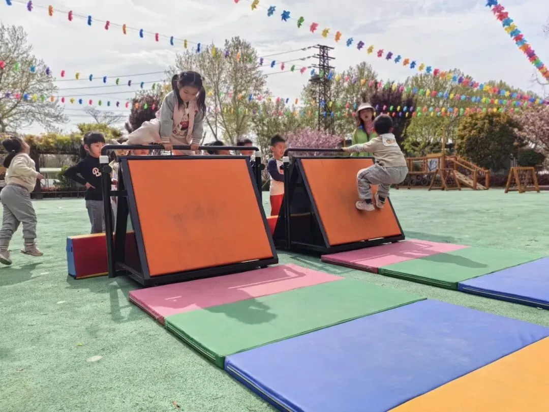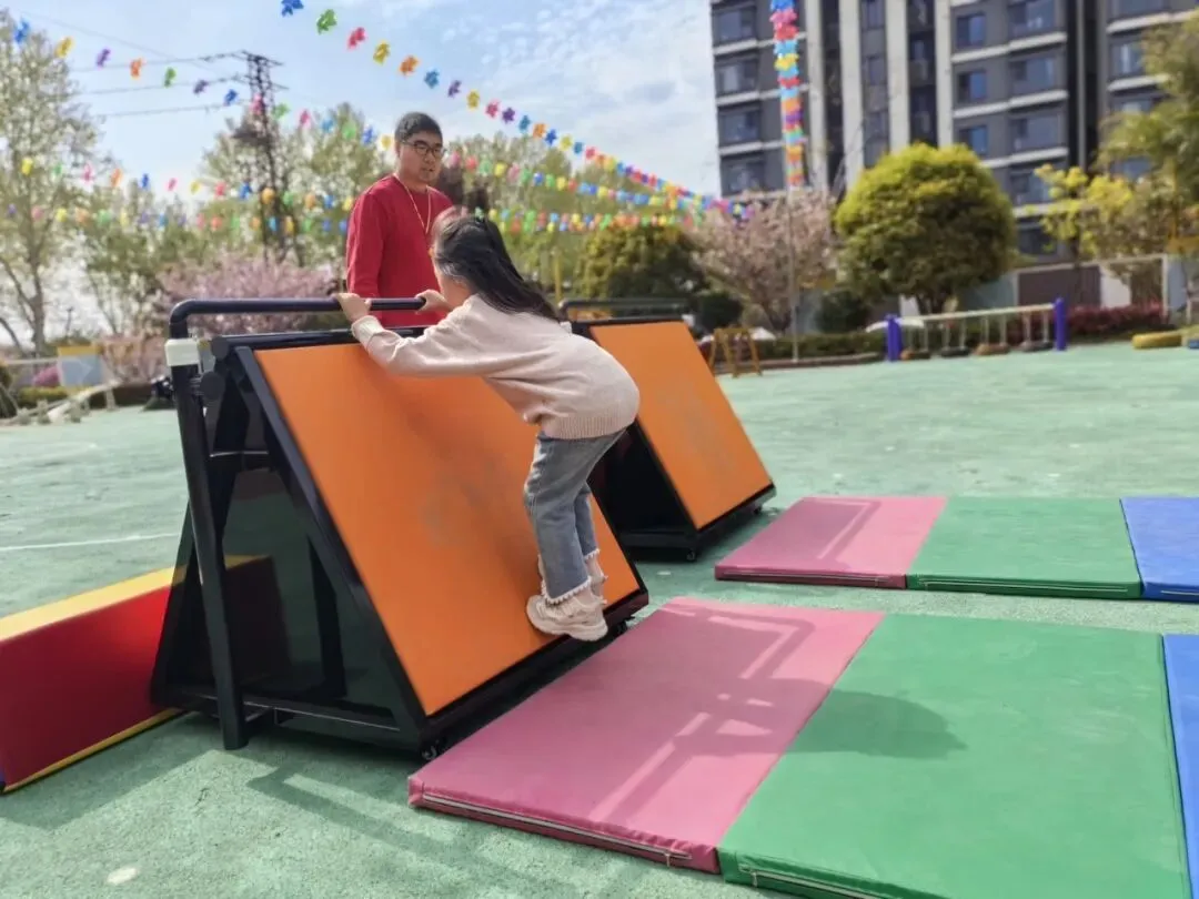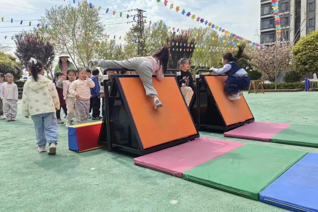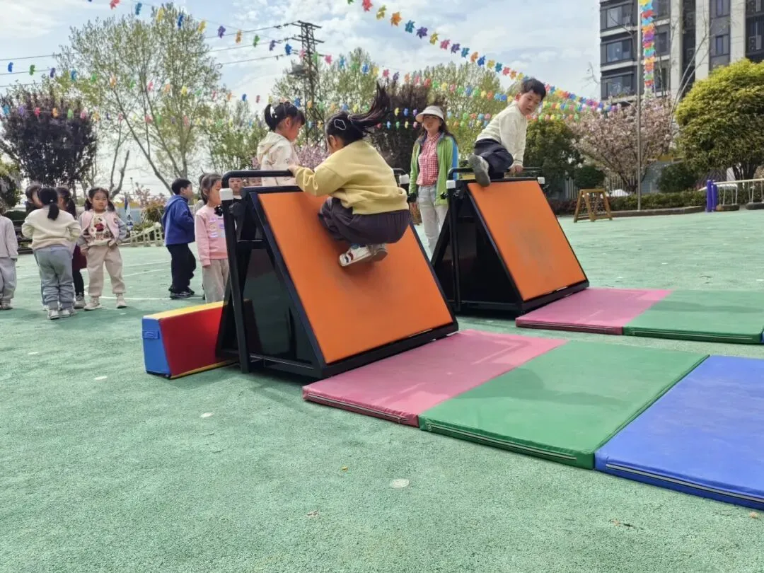 最激动人心的终极挑战来啦!孩子们要完成“翻A字板+猫挂”的连续动作!先稳稳翻过A字板,再迅速切换成猫挂姿势,一气呵成,真的超帅气,虽然有点小卡顿的孩子也不放弃,在老师和小伙伴的鼓励下坚持完成,每一位都是勇敢的小勇士!