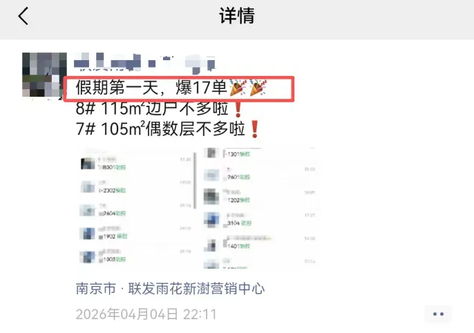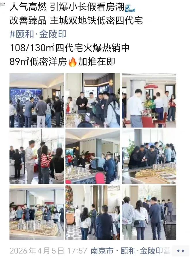 尽力解决南京房产买卖,房屋安全鉴定,拆迁安置,测绘,评估,公证,经济适用房,房改房,户口迁移,银行贷款出现的各种疑难问题,99%的问题通过免费咨询就可以解决,等待你的关注!半个月前,有朋友说到了4月南京楼市小阳春要熄火,也有人反馈说,这几天,小阳春的繁荣迹象已经明显减弱了,整体不如3月氛围火热。但实际上,调取了最近一周南京新房的认购成交情况后发现,迈入4月市场热度不减反增,是要明显优于上个月同期及去年同期的,“小阳春”行情其实还在持续发力中。4.1-4.7,南京新房累计认购约1121套,成交约640套。而去年同期的认购只有约500多套,成交约400多套,不论认购还是成交,增长都非常明显!再和3月初(3.1-3.7)对比,当时新房认购约450-500套,成交约250-300套,这么一分析,结果就很显然了,南京楼市小阳春行情还在慢火中烧。就在小长假期间,南京也有一批楼盘纷纷发喜报,成交表现都很不错。江宁豪宅金茂府,清明小长假三天热销7500万,领跑江宁高端改善市场。项目还一度垄断南京市一季度总价500万+项目成交金额、套数、面积的三冠王!江宁终改,还得看金茂府!江宁另一盘,竹山路的金茂樾满云川,小长假期间同样爆火大卖,累计销售26套,3天销售额破亿!生动诠释“金茂执掌半个江宁”的含金量!河西中部绿博顶豪瑞玺,官宣春假期间热销破1.2亿元。就在前段时间,项目3F洋楼成交价已突破 10.8 万+/㎡,墅厅洋房单价破8万/㎡,高层产品也站上7.1 万元/㎡,用实打实的高价成交为南京楼市树立起品质信心,确实牛!河西顶豪凤起潮鸣发布喜报,仅4月6日一天,成交金额就超1亿元,建面约14000㎡的实景示范区开放一周,新增认购超3亿元,实力非常猛!项目目前目主力在售175、206㎡洋房,以及325-500㎡低密多层。鼓楼首作四代宅,中建宁悦府小长假销售额突破8800万元,第一天就卖出了15套房,非常给力。双地铁+双学区+双会所+央企中建东孚高品控的品质呈现,如此一来热销也是情理之中。而且业主大多是高阶圈层,财富自由的商界精英,归国博士后、国企高知家庭等都将家安在了这里!燕子矶北城央璟颂,小长假3天劲销超6000万,城北全新品质标杆!江北某盘吸引买房人深夜排队抢房,大家都知道了。但除此之外,江北还有一些楼盘也在这个小长假期间取得了不错的成绩。雨山路地铁口的龙湖天曜城,小长假3天卖了20多套房, 确定性强的板块+实景肉眼可见的现房,就是这么香!雨花软件谷的小户型四代宅联发雨花新澍,小长假第一天就爆单,卖了17套房!3月销售也非常猛,一连夺得全市成交套数TOP1、全市成交金额TOP2、全市成交面积TOP3,并且蝉联雨花台区成交套数、金额、面积三冠王!雨花安德门地铁口的颐和金陵印,看销售发的现场图,从沙盘到洽谈区,全是人!目前项目8#130㎡、9#108㎡正在清栋,还有89㎡、110㎡正在热销中。南京主城核心的低密89㎡四代洋房,颐和金陵印值得重点关注。