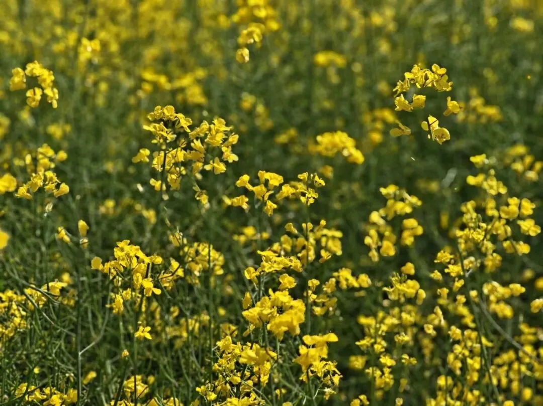 油菜花小小的、黄黄的,一朵一朵紧紧挨在一起,开成一朵大大的花!