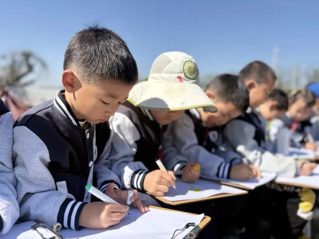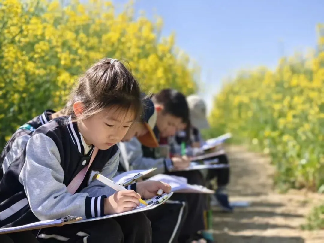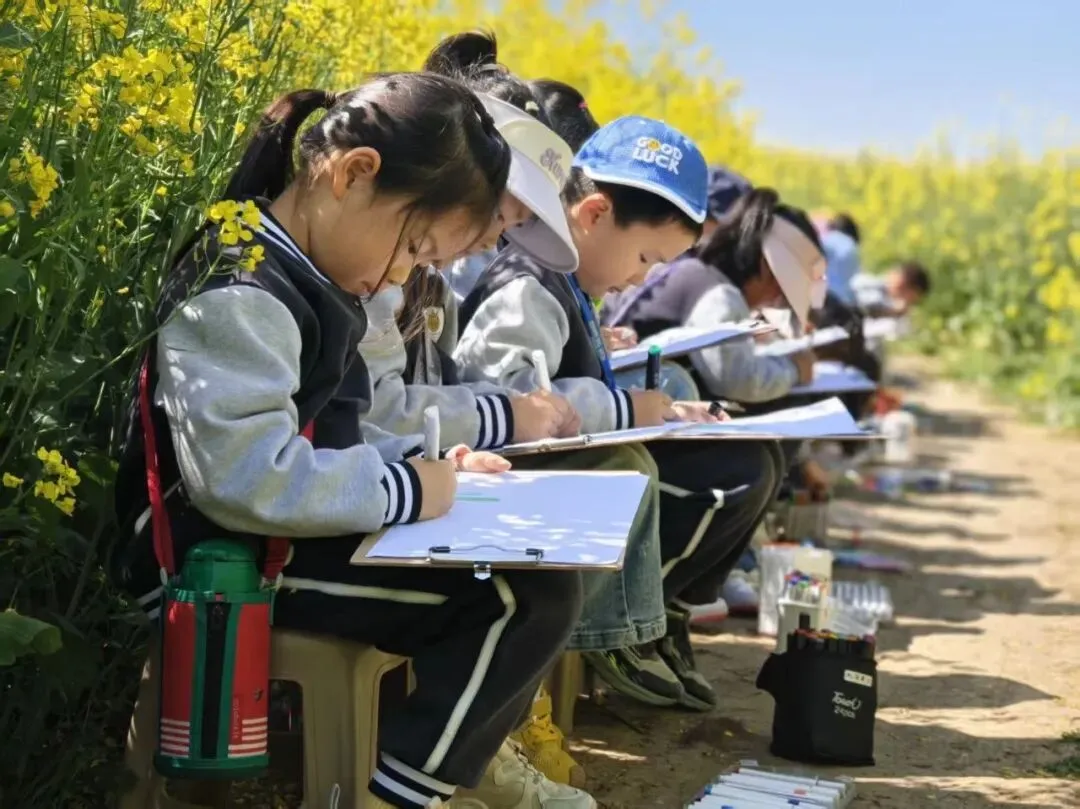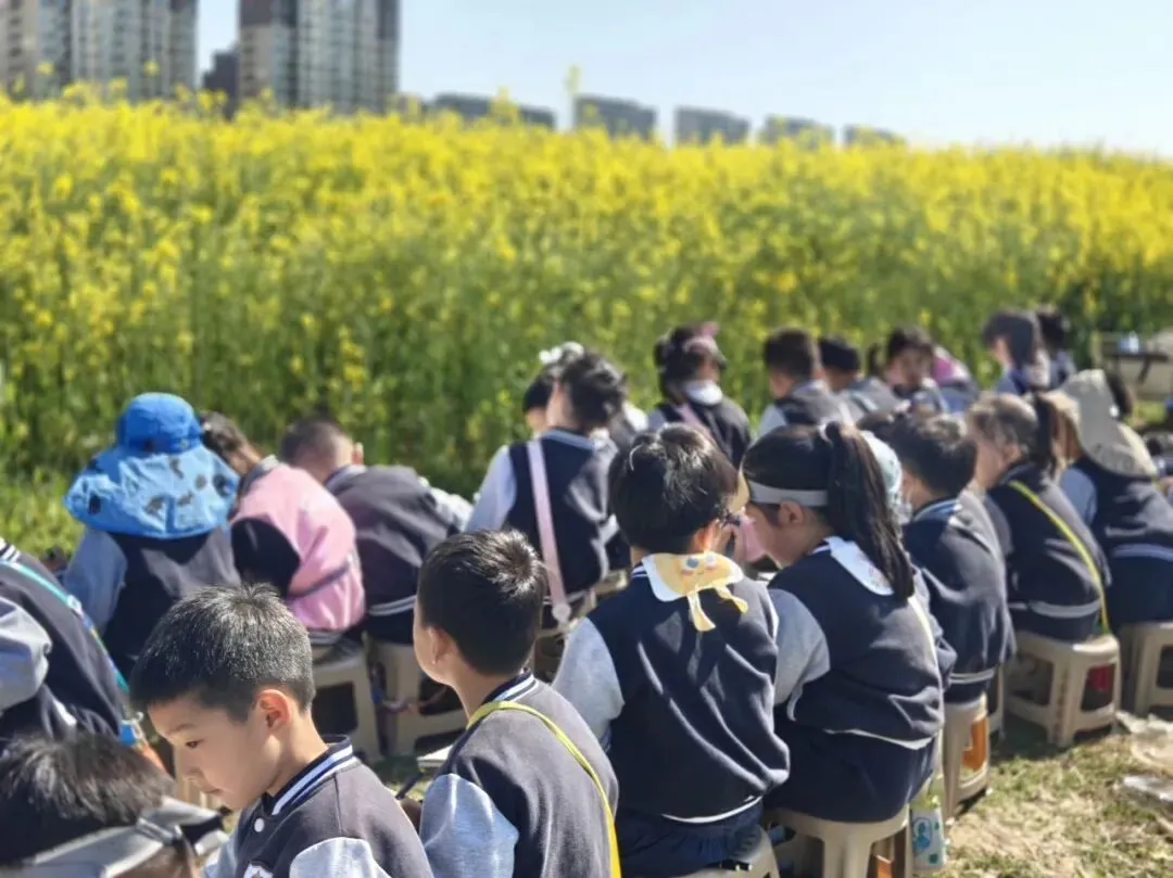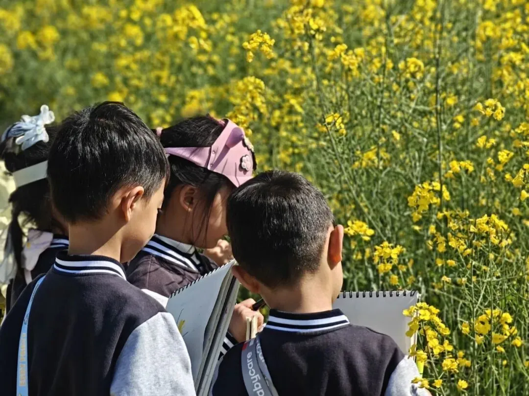 踏春启程之际,孩子们围坐一团,畅想着心中的春日美好。稚嫩的话语里,满是对金黄花田的向往与期待,童真烂漫,满是欢喜。
