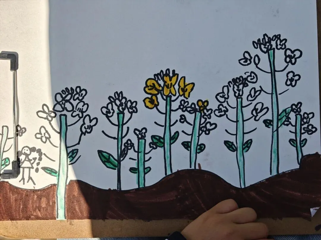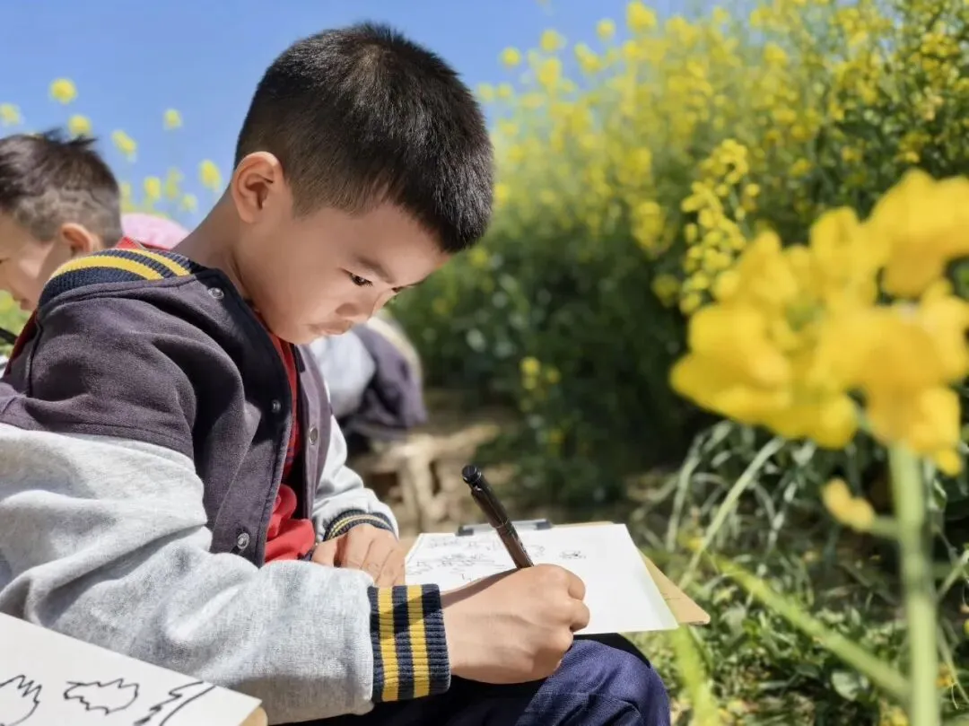 我们带着宝贝们走进了金灿灿的油菜花田,开展了户外写生活动。
