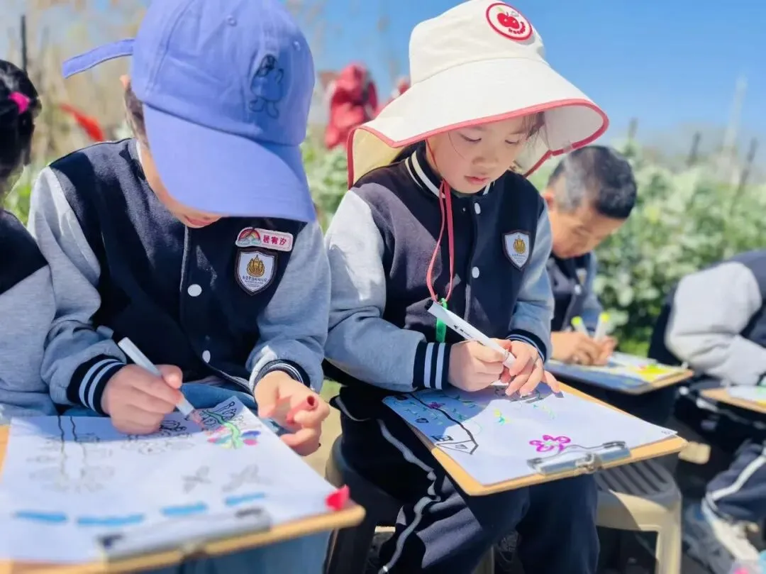 孩子们化身小小探险家。在安全范围内小心翼翼触摸花茎、轻嗅花香,好奇地寻找花丛间的小蜜蜂。欢声笑语回荡在花田上空,孩子们在尽情嬉戏中感受春风温柔,释放童真,学会了爱护花草。