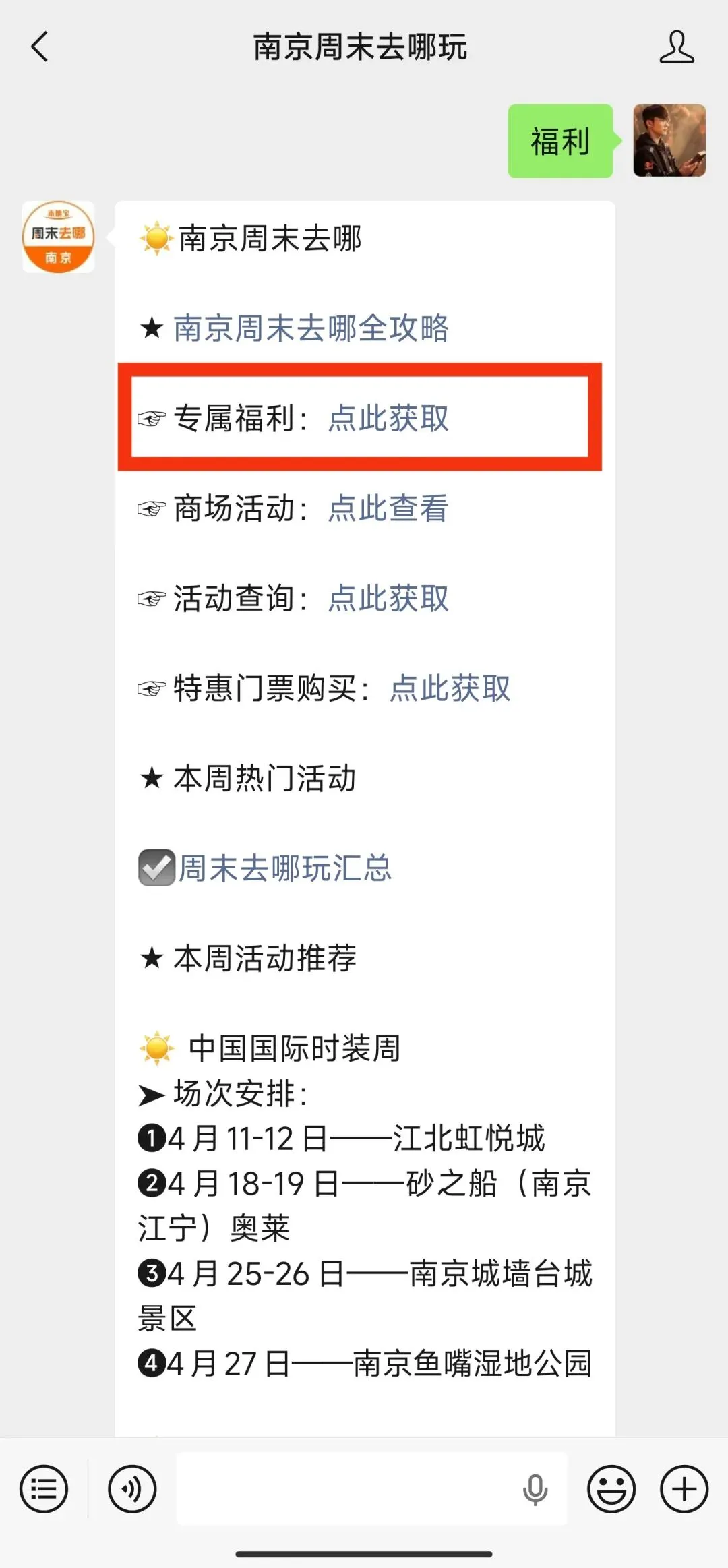 抽奖入口:点击下方名片,关注【南京周末去哪玩】公众号,私信回复【福利】即可获取