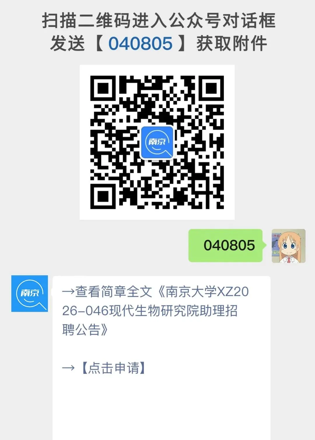 请点击左侧【点击申请】或登录南京大学人才招聘网(http://zp.nju.edu.cn/)注册报名。截止日期为:2026年04月10日
