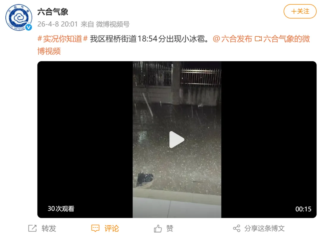 靠近六合的滁州也下起冰雹!