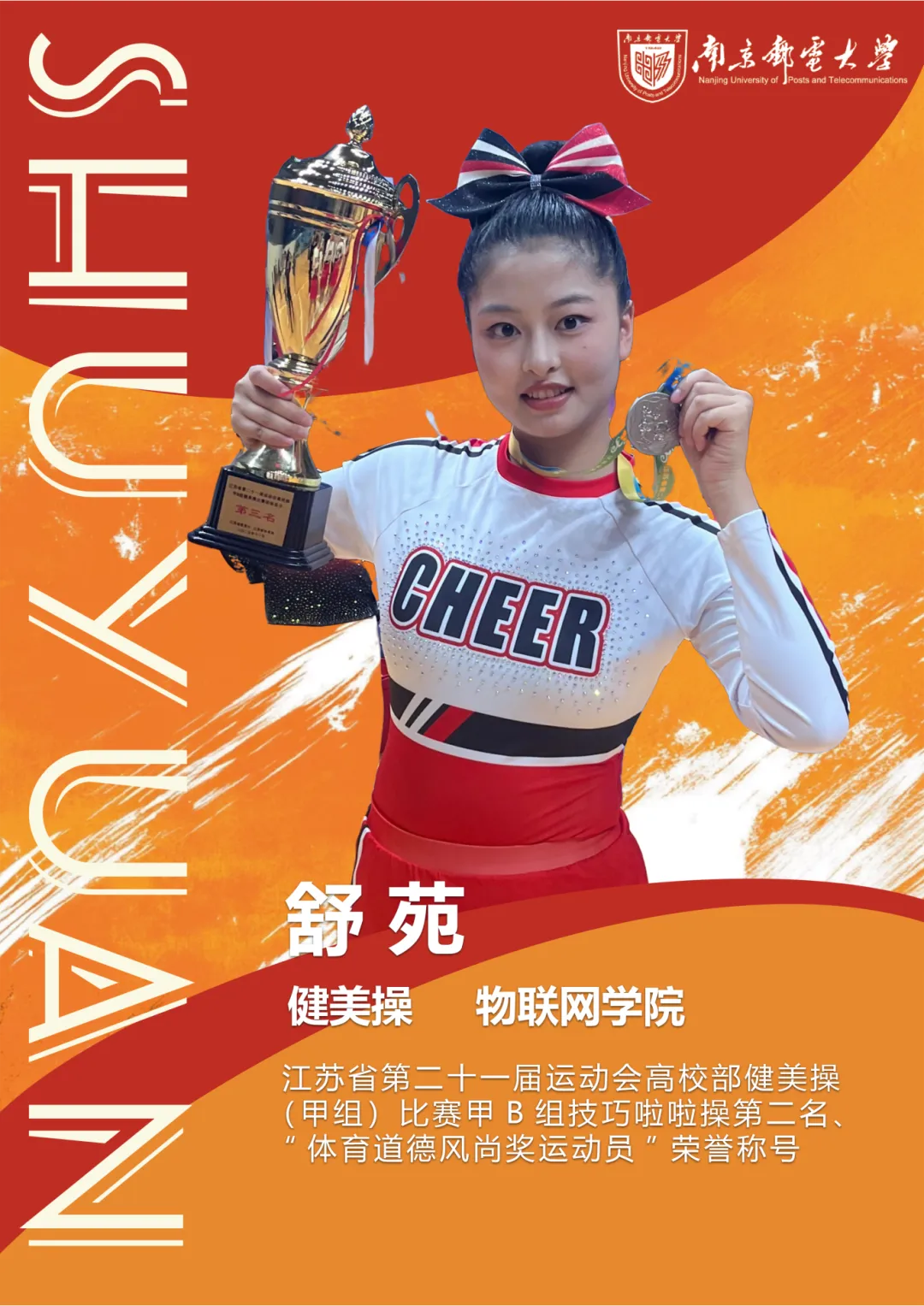 江苏省第二十一届运动会高校部健美操(甲组)比赛甲B组技巧啦啦操第二名、“体育道德风尚奖运动员”荣誉称号。