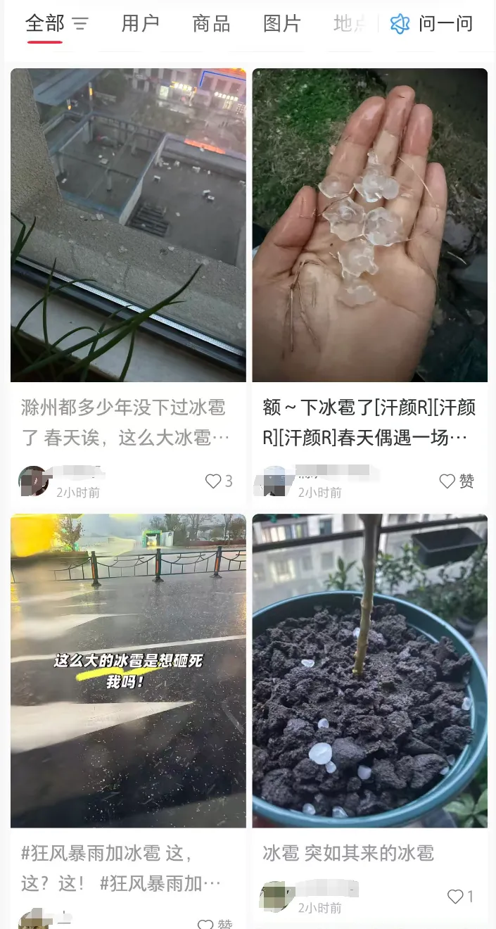 靠近六合的滁州也下起冰雹!