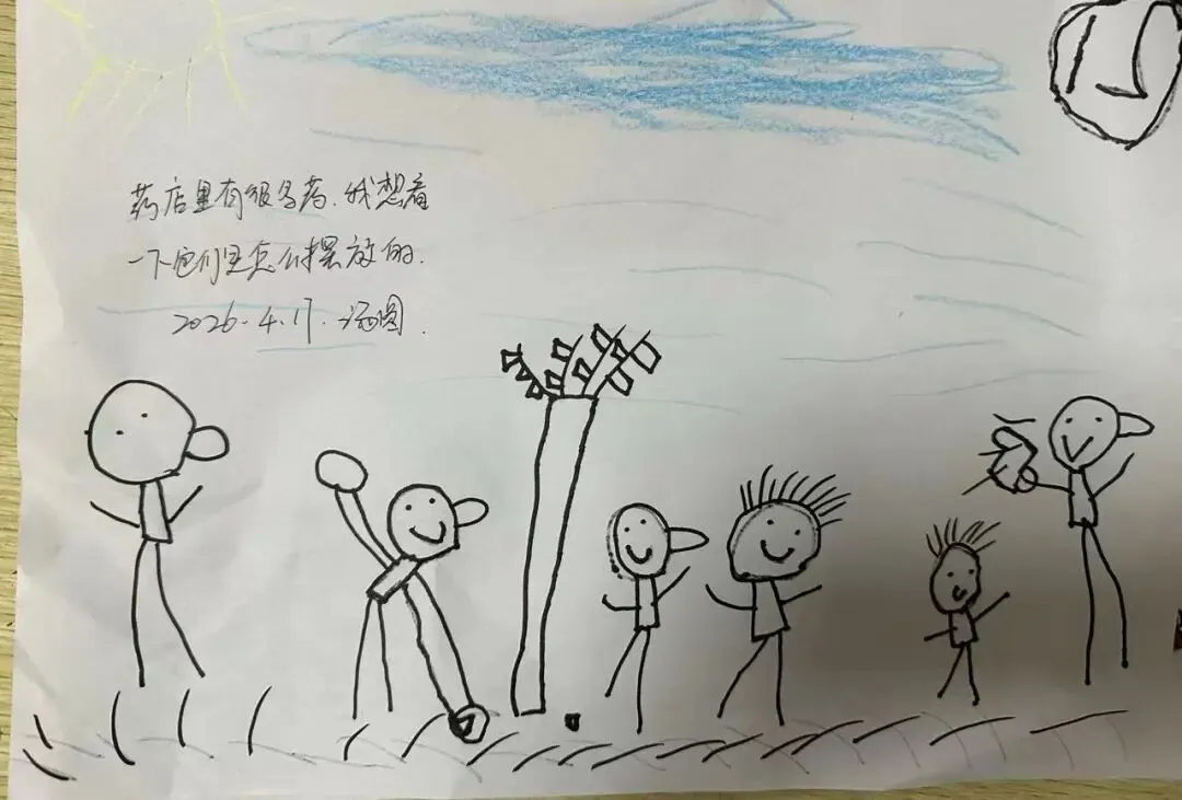 药房里的阿姨温柔地介绍:“这些药品要按照功效、剂型分类摆放,还要时刻检查有效期,不能有一点点马虎哦!”