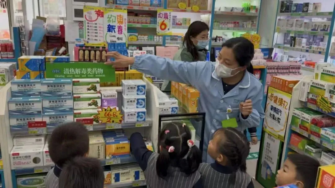 孩子们踮着脚尖,看着药房的阿姨快速地核对处方、取药、打包,手指在键盘上飞快敲击,嘴里还轻声念着药品名称和用法用量。