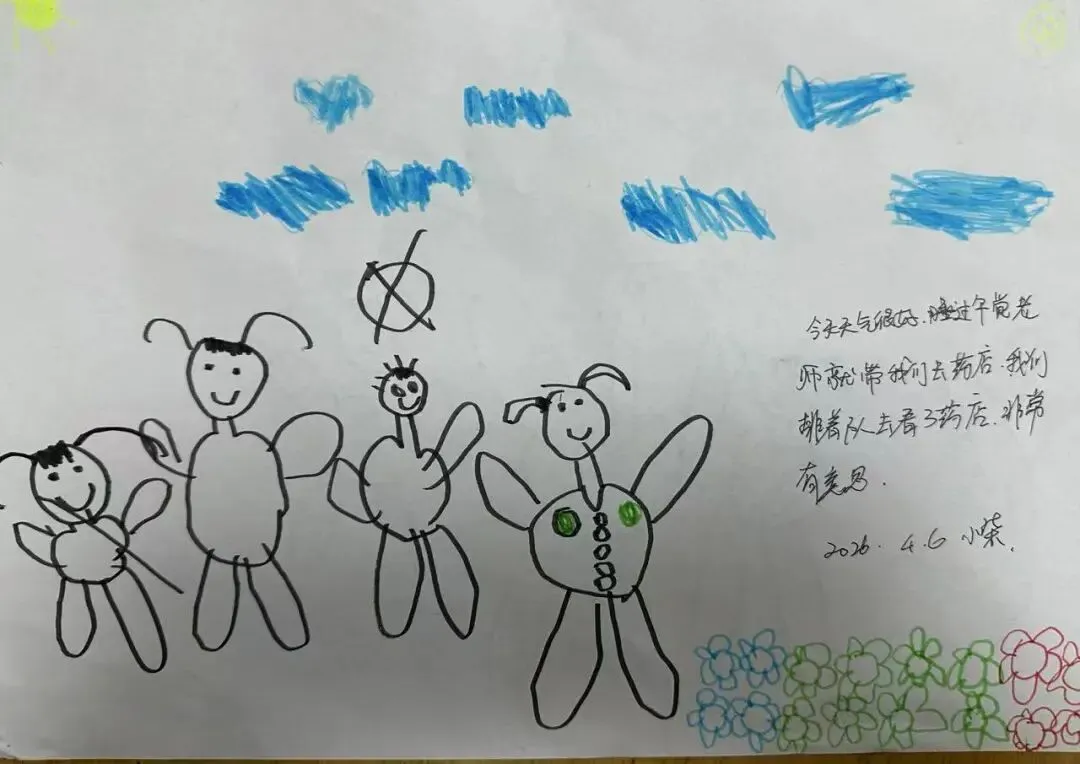 还有小朋友担心地问:“他们会不会很累呀?他们要给好多人拿药吧?”