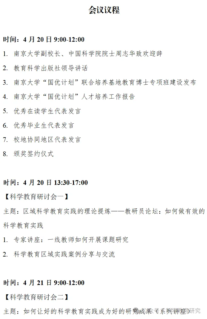 会议预告|南京大学“国优计划”校地协同育人推进会暨首届南京大学“大中小衔接”科学教育研讨会通知