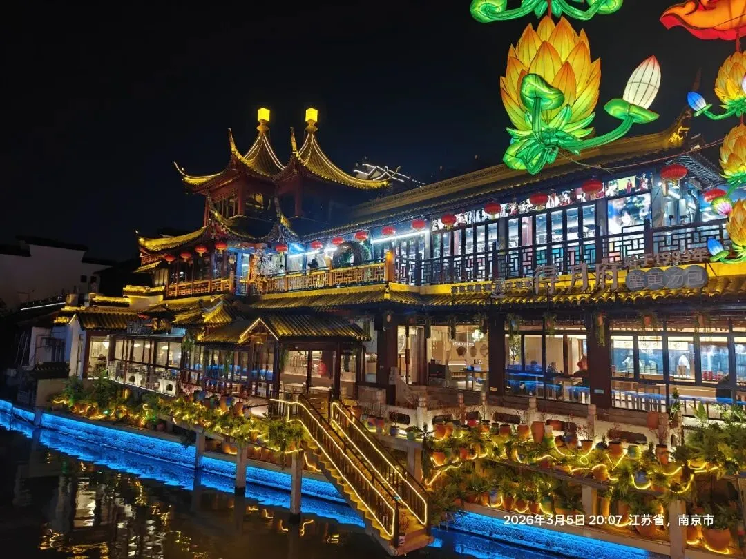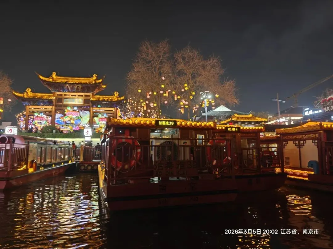 船至终点,依依不舍下船。回望秦淮河,灯火依旧璀璨,画舫仍在穿梭。老门东的灯影、夫子庙的喧嚣、秦淮河的诗韵,共同构成了金陵夜晚最动人的画卷。这一夜,我不仅赏了灯、看了景,更读懂了金陵的烟火与风雅——它既有老门东的历史底蕴,又有夫子庙的热闹人气,更有秦淮河的千年诗意。