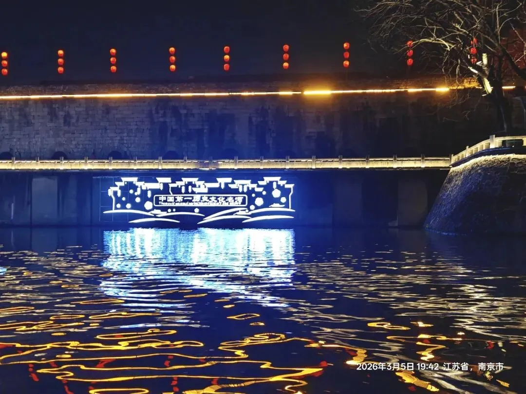 船行至文德桥,灯光倒映河面,与桥上灯火连成一片,如星河倒悬。此时,耳畔仿佛响起杜牧的诗句,眼前浮现千年前文人乘舫夜游、把酒言欢的场景。画舫摇曳,桨声轻响,与两岸的灯火、远处的钟声交织,让人恍若穿越时空——一边是千年前的诗酒风雅、金粉繁华,一边是当下的人间烟火、熙攘热闹。古今交融间,秦淮河不再只是一条河,而是一部流动的金陵史,藏着这座城市的兴衰与荣光。