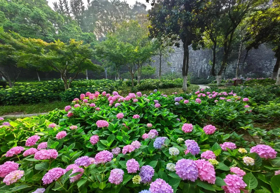 这里的绣球花颜色会随着土壤酸碱度变化,