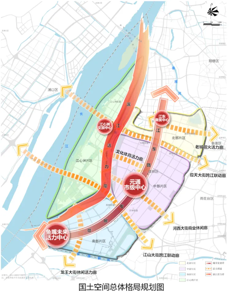 途经雨花台区、建邺区、鼓楼区、栖霞区。