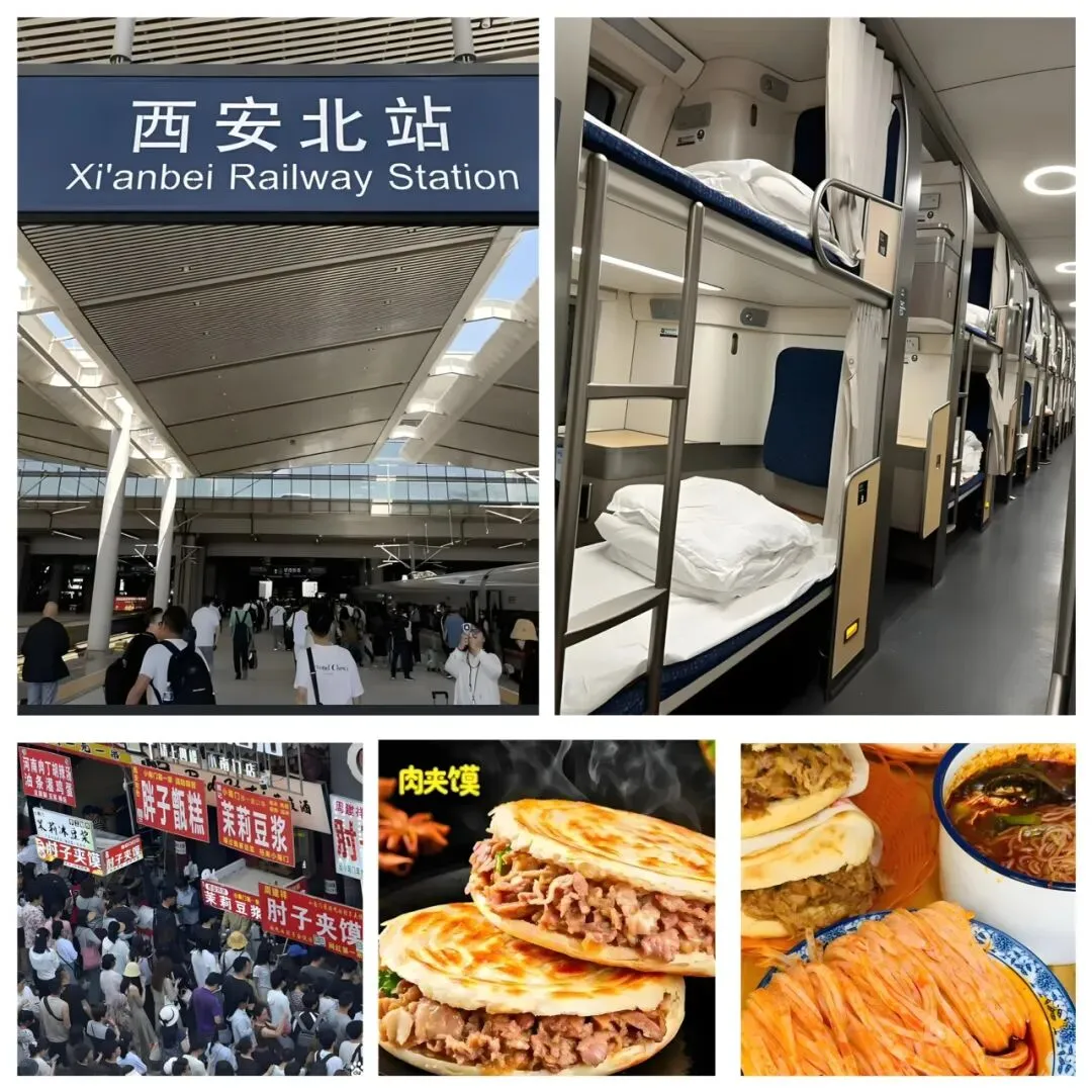 第二天早上5点23分,列车抵达西安北站。距离下一趟车出发还有两个多小时,时间完全够用。你可以在宽敞明亮的车站里休息,如果精力旺盛,甚至可以溜达出去,感受一下古都清晨的烟火气,找家早点铺子,咥一碗热乎乎的肉夹馍和胡辣汤,那才叫一个美!