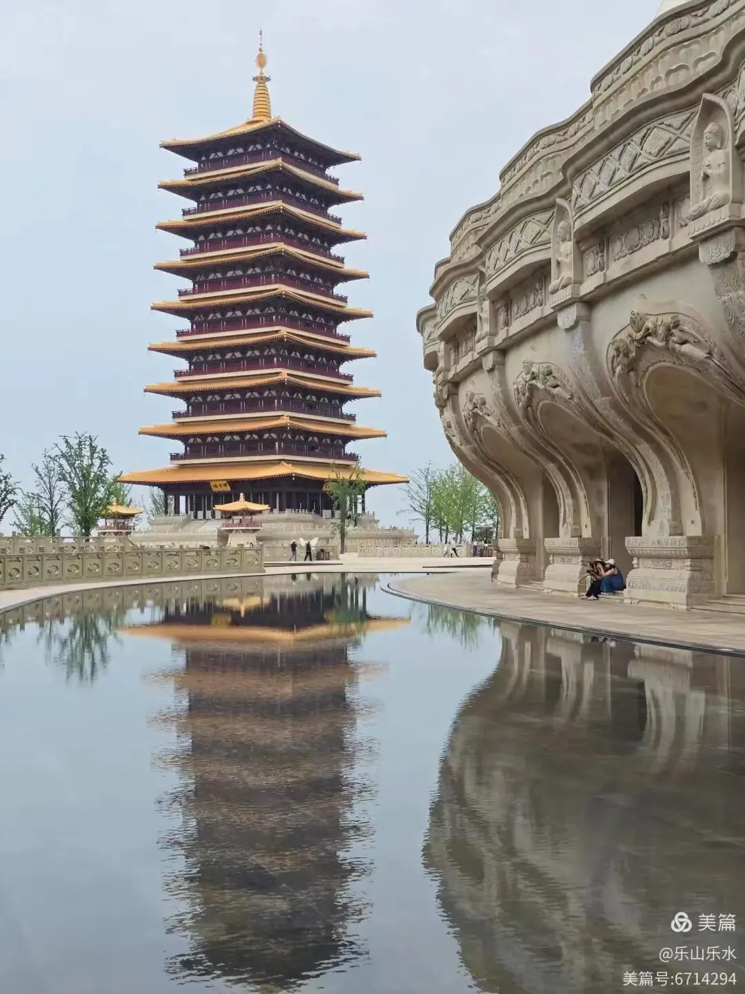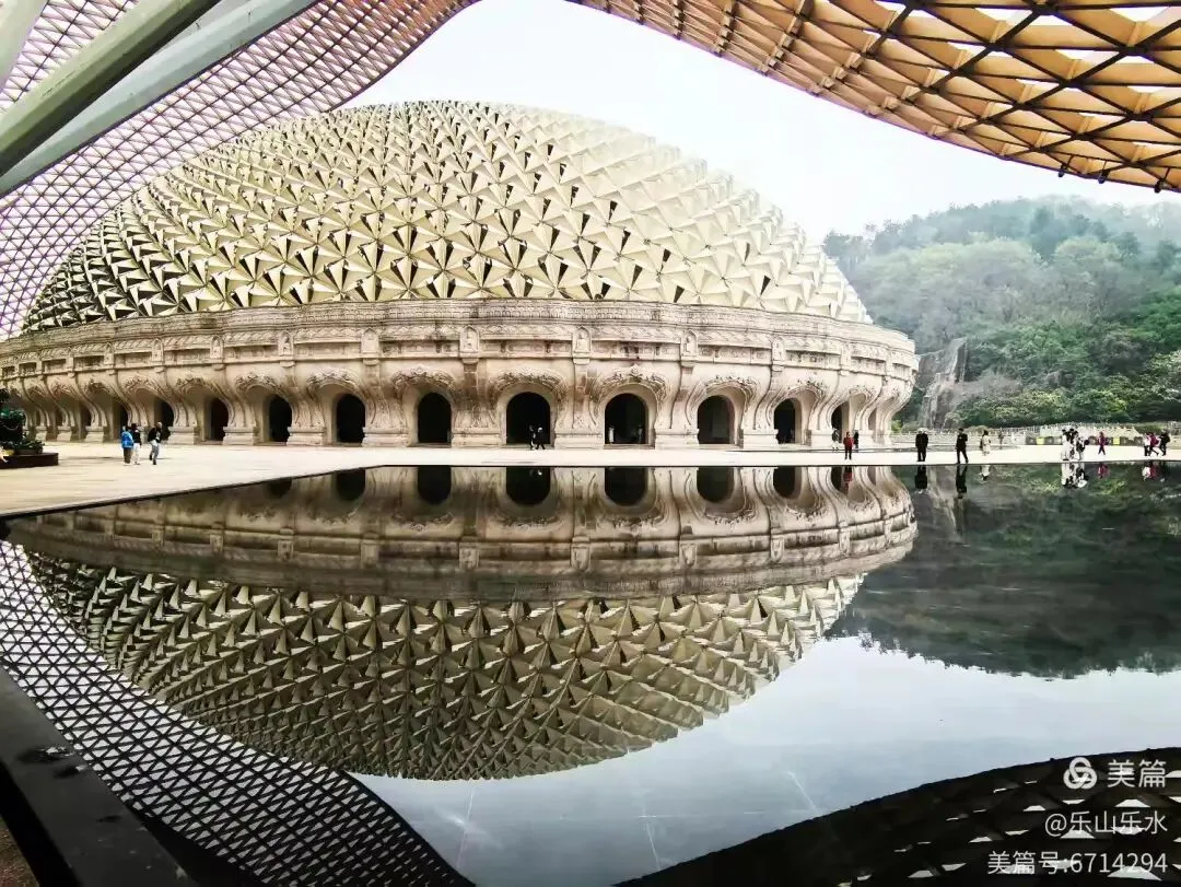 水池如镜,把穹顶、山色、云影全收进去,人站在池边,仿佛也成了倒影里的一笔静气。