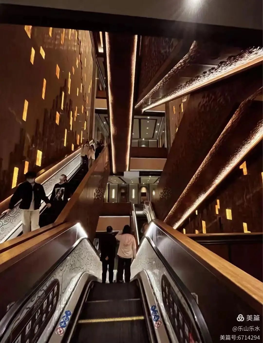 在扶梯上笑一笑、在水池边静一静、在长廊里走一走、在佛前停一停。
