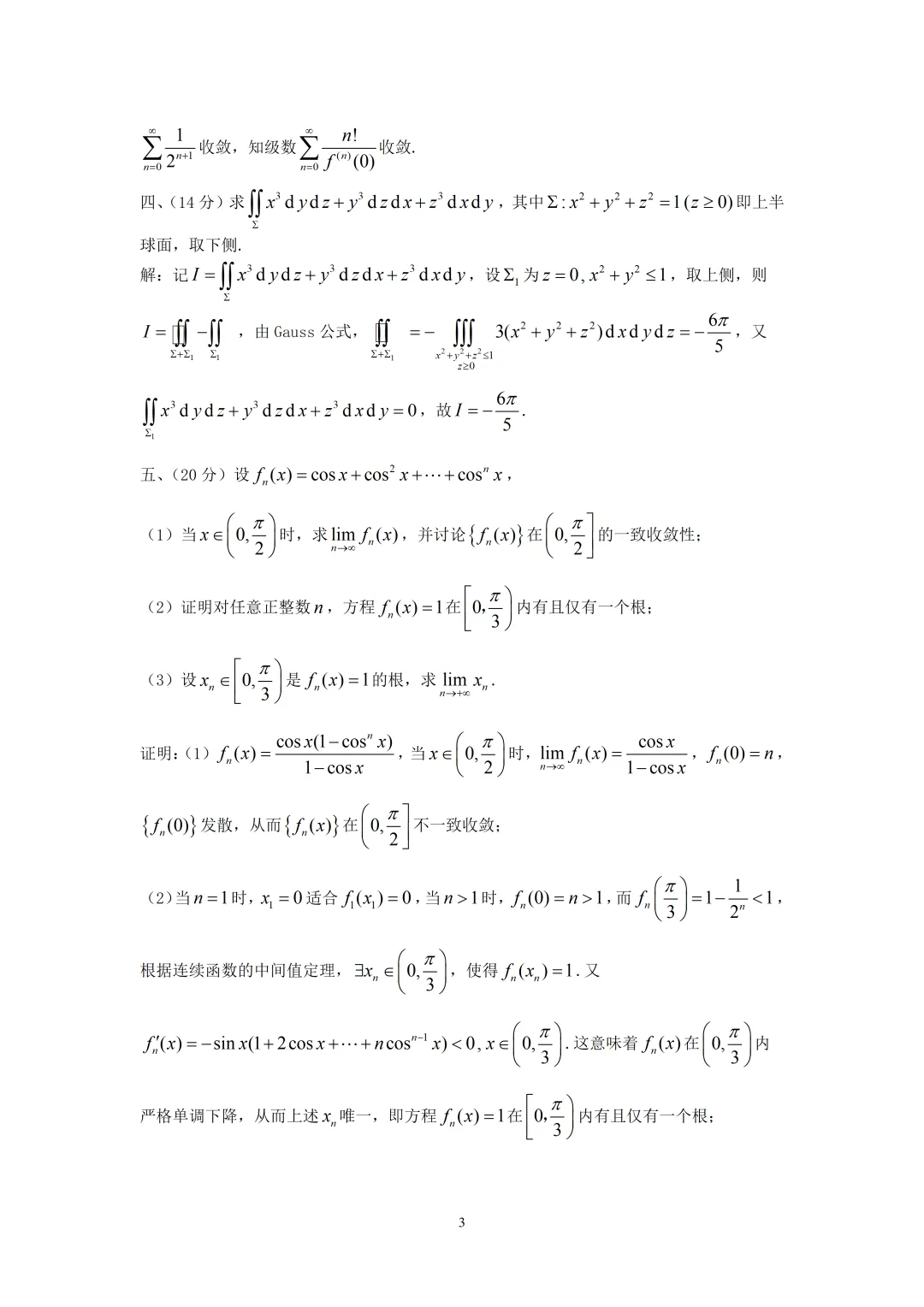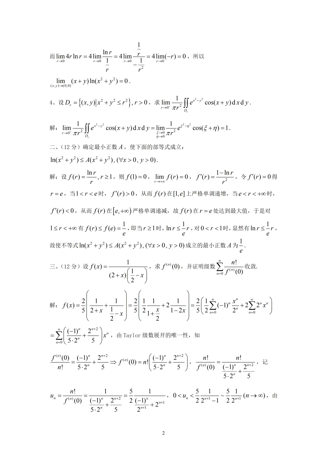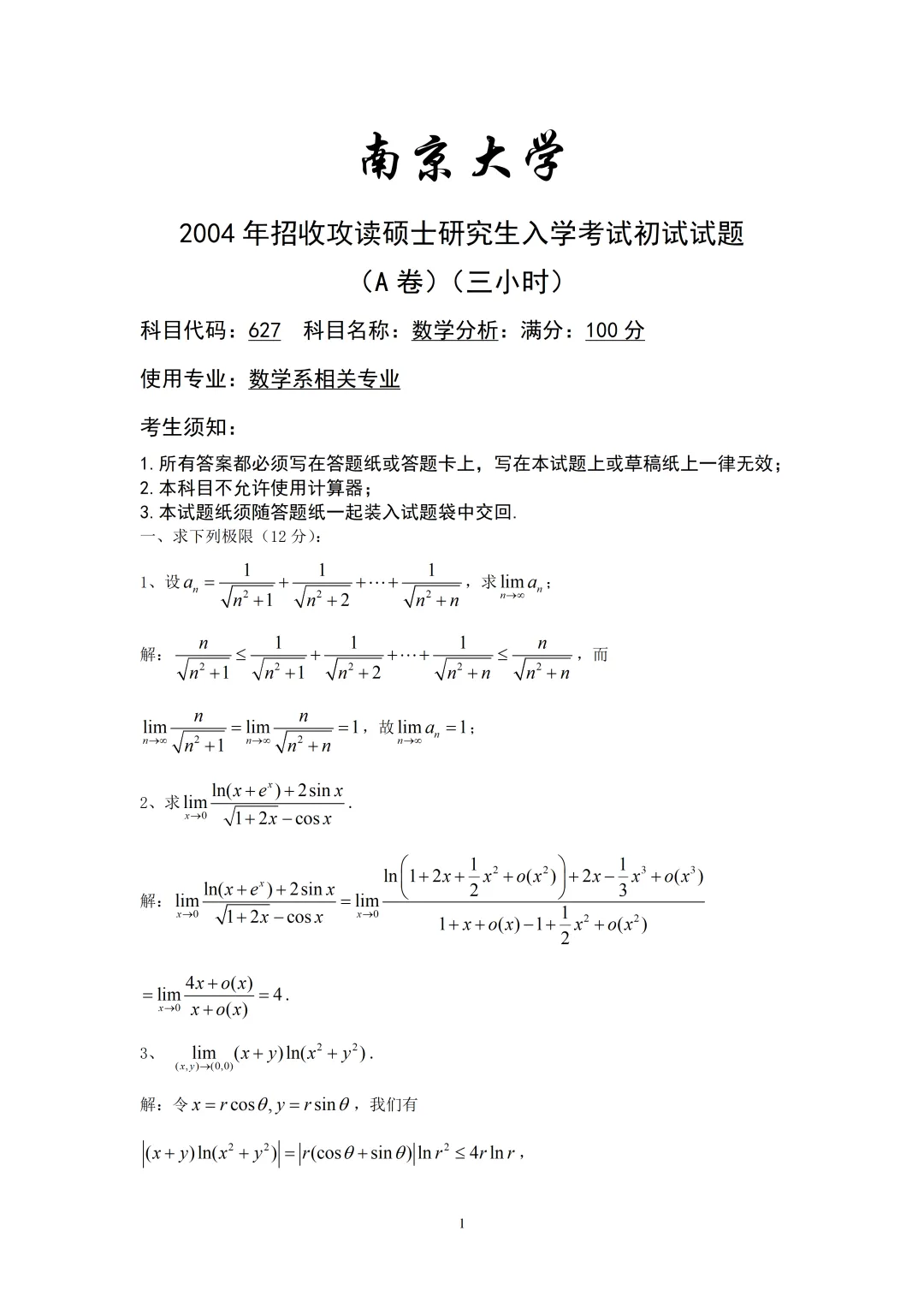 南京大学2004年招收攻读硕士学位研究生入学考试《数学分析》试题及答案,第一题选择题我给出了详细的解答,有助于同学们对每一个概念有一个准确的认识,不但知其然,而且知其所以然,对一致连续性,无穷大量、函数的改变量、级数的收敛与绝对收敛。第二题填空题,给出了为什么填这个值的理由,写出了详细的推导过程,第三题证明题等等,总的来说,我们对每个题目都做了详尽的解答,以便让同学们一看就明白,容易掌握这个知识点,对复习考研是很有好处的,以后我会对北京交通大学的题目逐一给出解答,对这个学校有报考意向的同学,可以下载参考,希望对同学们有所帮助,做真题前,好好复习课本是很有必要的,课本要反复的看,题要反复的做,日积月累,终会有所收获的,数学的学习很辛苦,同学们只要坚持去学,不会多问,一定能够达到目的.