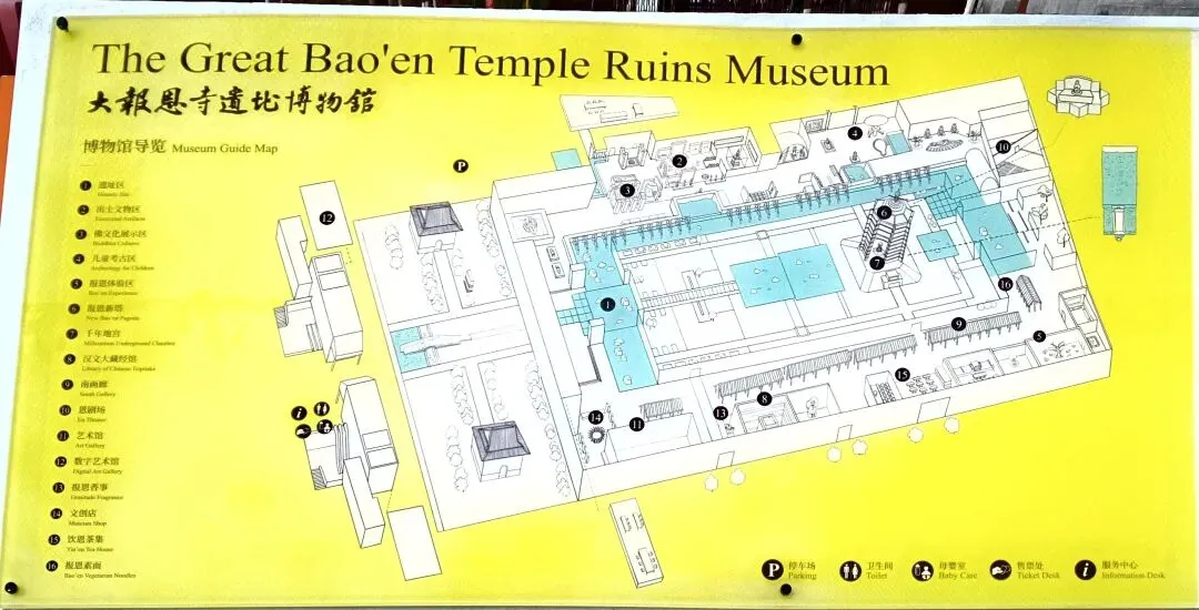 Since 2007, important archeological discoveries have been made on the site of Grand Bao'en Temple. In 2010 a sarira of the parietal bone of Buddha was unearthed here, which made it one of the Top Ten Archaeological Discoveries of the year in China. In 2013, the site of Grand Bao'en Temple was designated as National Cultural Heritage Site. In the year of 2015, it is at this historical moment that the Great Bao'en Temple Ruins Museum was established.