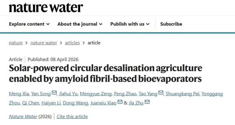 提出了一种“太阳能驱动循环海水农业系统”。该系统以太阳能为核心驱动力,将海水转化为高质量灌溉水,同时实现农作物生产与农业废弃物的高值利用,构建“水—食物—材料”闭环循环体系。