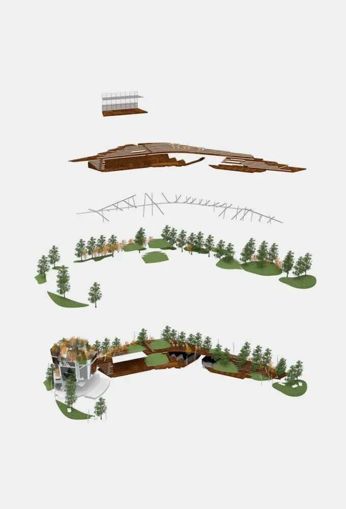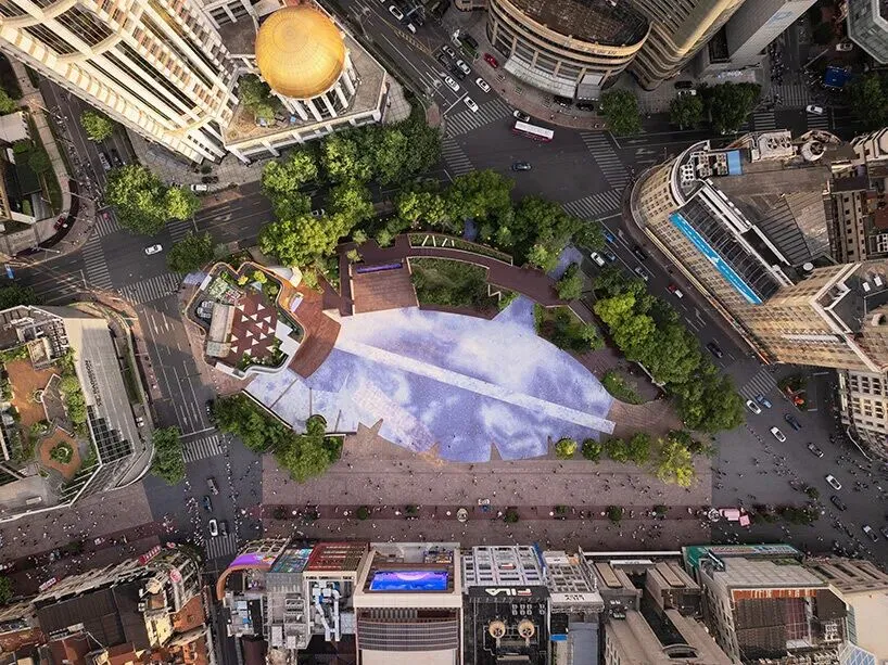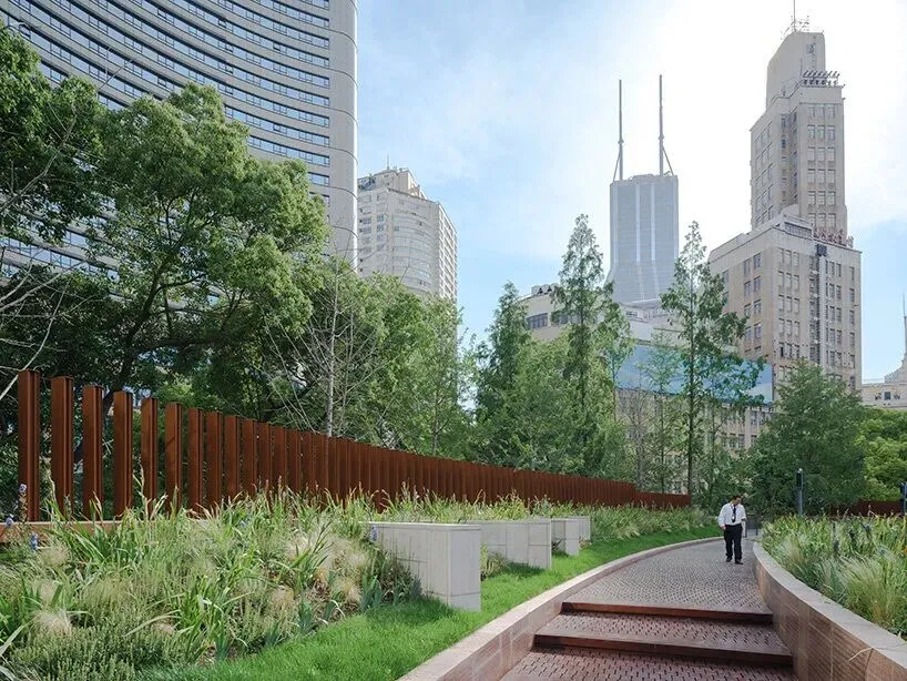 这场改造最动人的突破,是将原先以硬质地面为主的广场,打造成了绿意盎然的 “城市绿洲”。EMBT 团队引入大片绿地与绿色坡地,搭配遮阳屋顶和雨水防护设施,在繁华的南京东路商圈,为市民和游客开辟出一片可呼吸的生态空间。