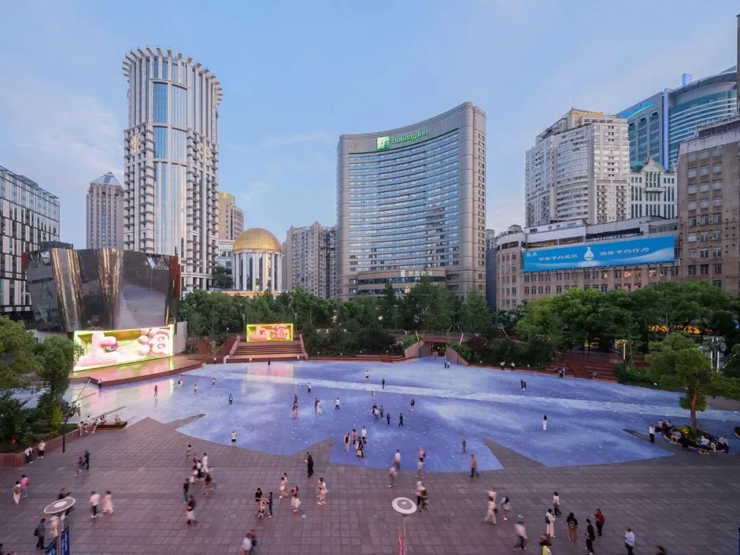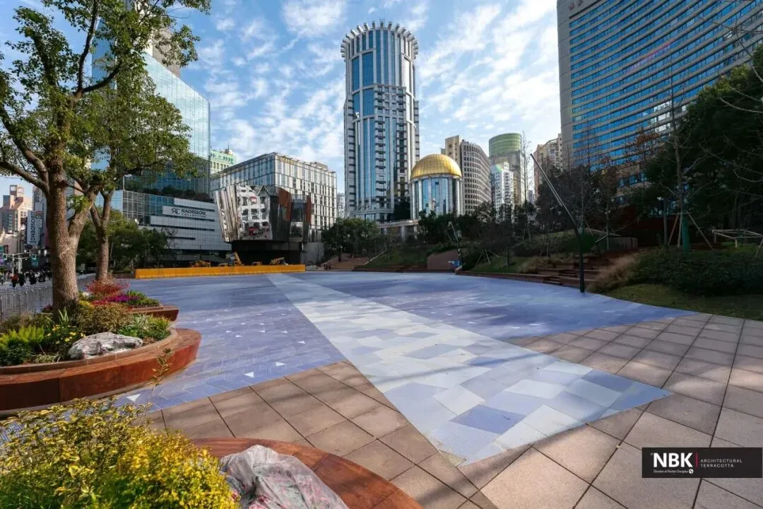 这些植被不仅软化了广场与周围高层建筑的生硬边界,更形成了天然的 “微气候调节器”—— 过滤空气、缓解热岛效应,让在上海人流最密集的街区里,诞生了一处能躲避酷暑、享受阴凉的休憩角落。