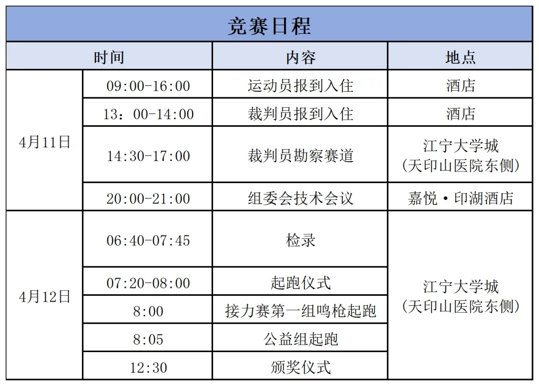 比赛时间:2026年4月12日上午8:00(星期日)比赛地点:江宁大学城(天印山医院东侧)