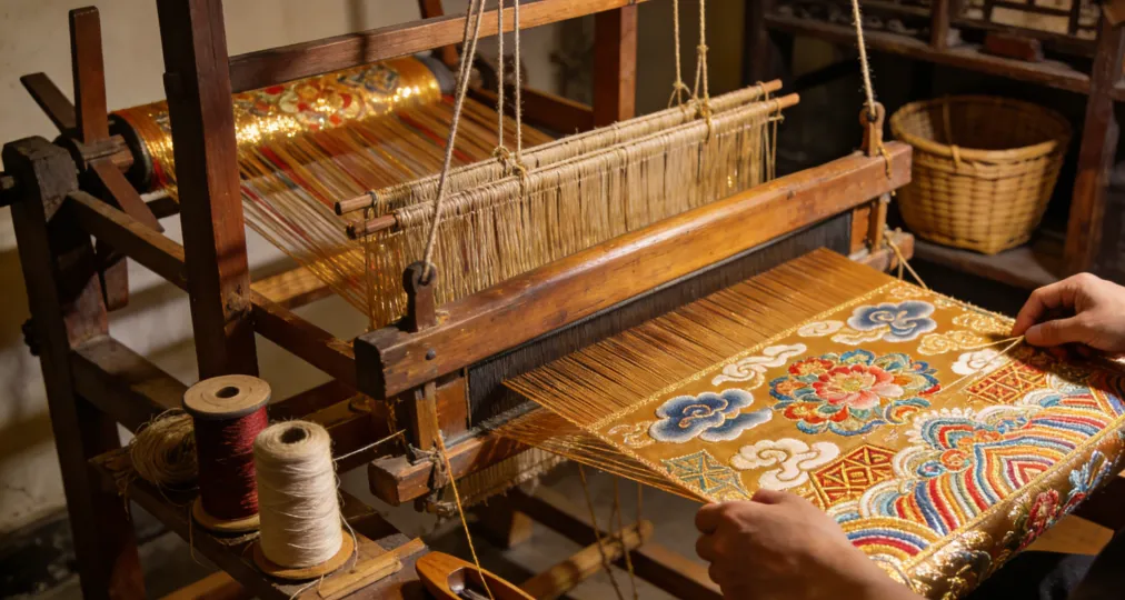 Its complete production process is extremely complex and meticulous. First, raw materials such as mulberry silk need to undergo dyeing and processing, and specially made gold and silver threads as well as peacock feathers need to be prepared. Then, the artisans follow the principles of "beauty, spaciousness, and grandeur" to design the patterns, drawing detailed designs that can be precisely executed down to each individual thread. The core process of "weaving patterns" uses the ancient principle of knotting to transform the design into a programmed "pattern base" made of silk threads. When weaving on a large loom, complex assembly procedures need to be completed on the wooden loom. The weaver on top raises the warp threads according to the pattern, while the weaver below cooperates by inserting shuttles, introducing gold threads with chisel-shaped tools, passing through pipes to carve the patterns (i.e., "passing the warp thread and cutting the weft thread") and weaving the weft. The two work together, and each day they can only weave a few inches. This series of rigorous procedures collectively constitute the exquisite craftsmanship system of Yunzhuang as an ancient royal imperial fabric.