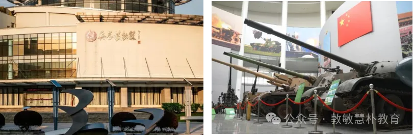 兵器博物馆珍藏了自第一次世界大战以来,世界多个国家不同历史时期的火炮类、轻武器类、导弹类等诸多门类的现代兵器装备,以数量众多、专业性强闻名。其中许多为我国自行研制的武器装备。中心展厅为半圆形,圆心位置是一辆参加过1999 年国庆阅兵的 89 式 120 毫 米自行反坦克炮、一具 59 式 57 毫米高炮射击指挥仪和一枚 C611 反舰导弹。大部分圆弧部 位布置了大大小小的高炮,炮口指向圆心,另外一小部分是火箭炮展区。各种压制火炮、老式 地炮、航炮和火箭筒布置在回廊两侧。当孩子们踏入南京理工大学兵器博物馆的那一刻,他们 开启的不仅是一次历史探索,更是一场融合科技、历史与国防教育的沉浸式学习。