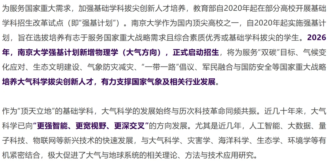 >南京大学2026年强基计划新增大气科学专业!