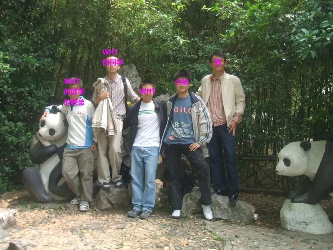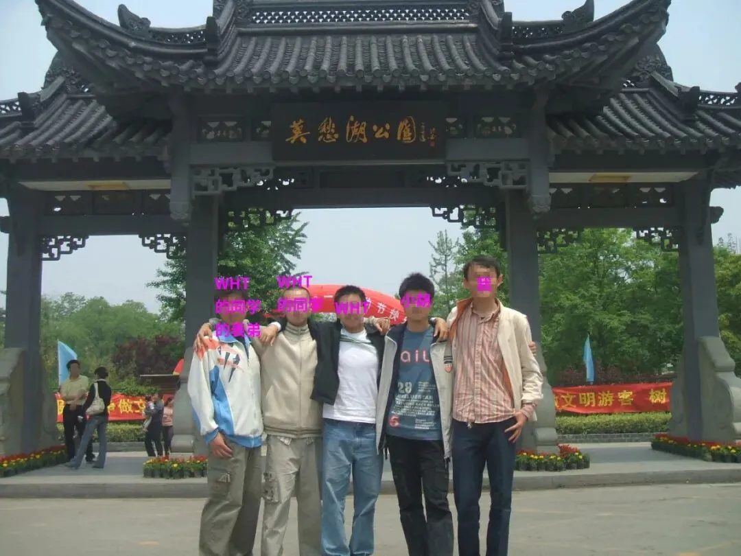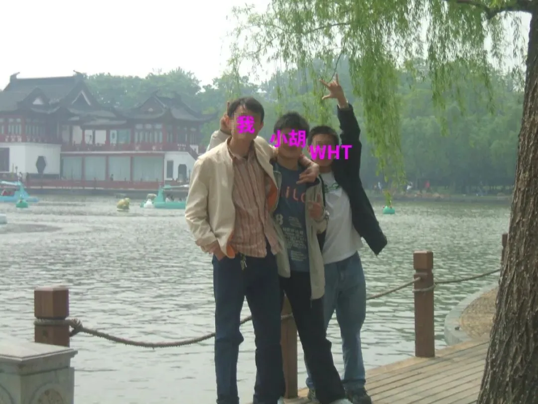 3.图2、3,拍摄于南京的莫愁湖,从左到右依次是WHT同学的亲戚、WHT同学、WHT、小胡、我。