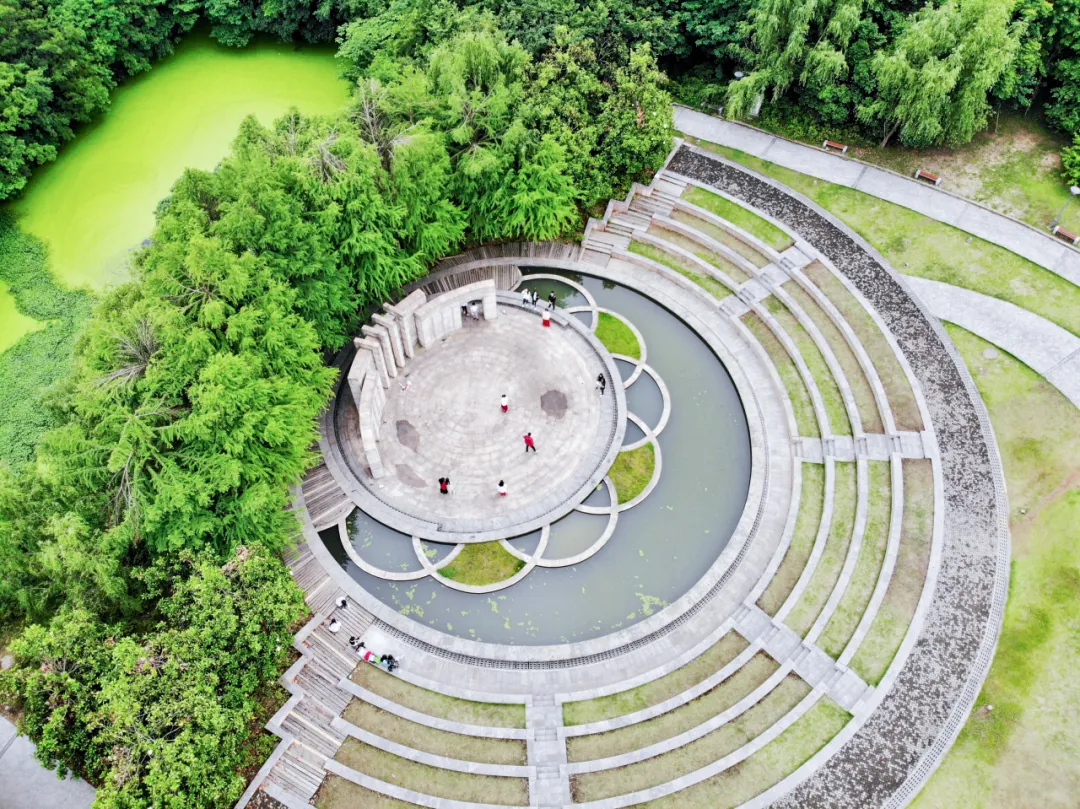 从校园正大门直走,便是润泽广场。作为校园核心公共空间,润泽广场紧邻润泽湖而建,环境开阔雅致。润泽广场取义于天圆地方,外圆内方,突出自然之道与为人之道的统一,“润泽”取义于《礼记》:“君子比德于玉焉,温润而泽,仁也”,寓意大爱育人。