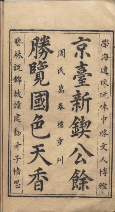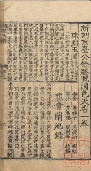 万历二十五年金陵周氏万卷楼重刊本《新刻京台公余胜览国色天香》