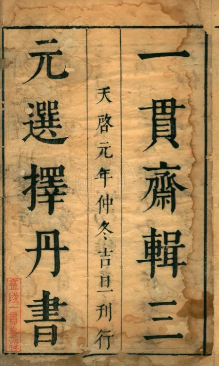 左:明天启元年(1621)金陵一贯斋《三元选择丹书》