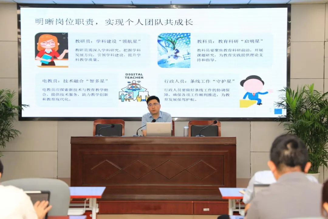 他立足区域实际,组织制定教师发展行动纲要,启动“雨花星光”计划,明确“研训一体、合力服务”的发展定位。通过整合各种资源,积极构建教师发展协同创新体系,以系统性的顶层设计与实践创新,夯实区域教师专业成长的基础,赋能区域教育高质量发展。