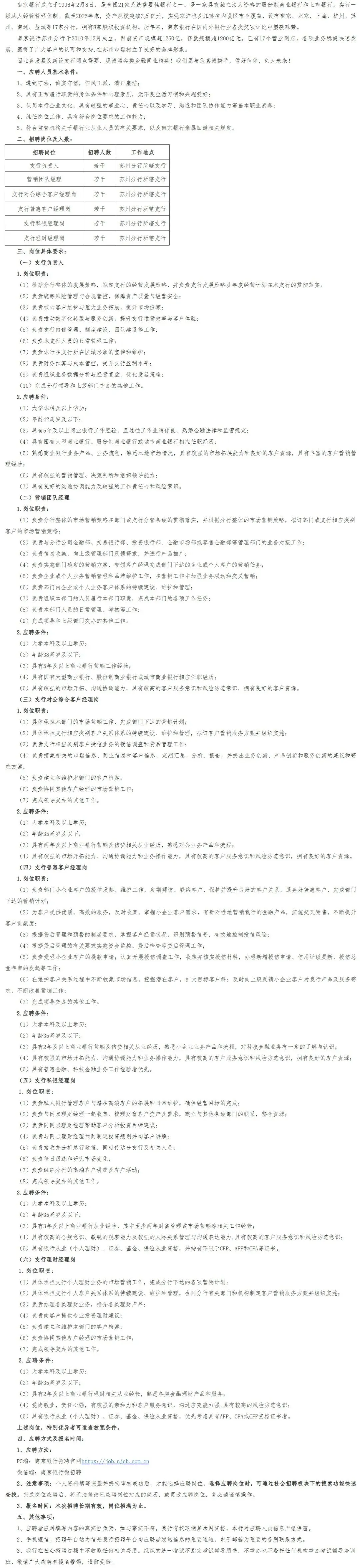 网站报名:https://job.njcb.com.cn