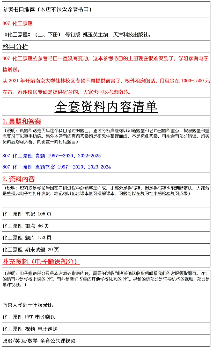 摩尔500题、小宇1400题、天大真题、太原理工真题:化工原理的题目实在是太少了,同样150分的大科目,市面上的题远远不是数学那么丰富,很容易就没题做了,这些题目都是化工也都还行,但做的时候注意做和807对口的,有些题目、题型不会考的可以不做,做的时候多留意选填,可以做部分计算题(807的计算题还是比较简单的了,问的都很直白,也没弯弯绕绕的,不同年份都是照葫芦画瓢,会一个一个题型都会了)