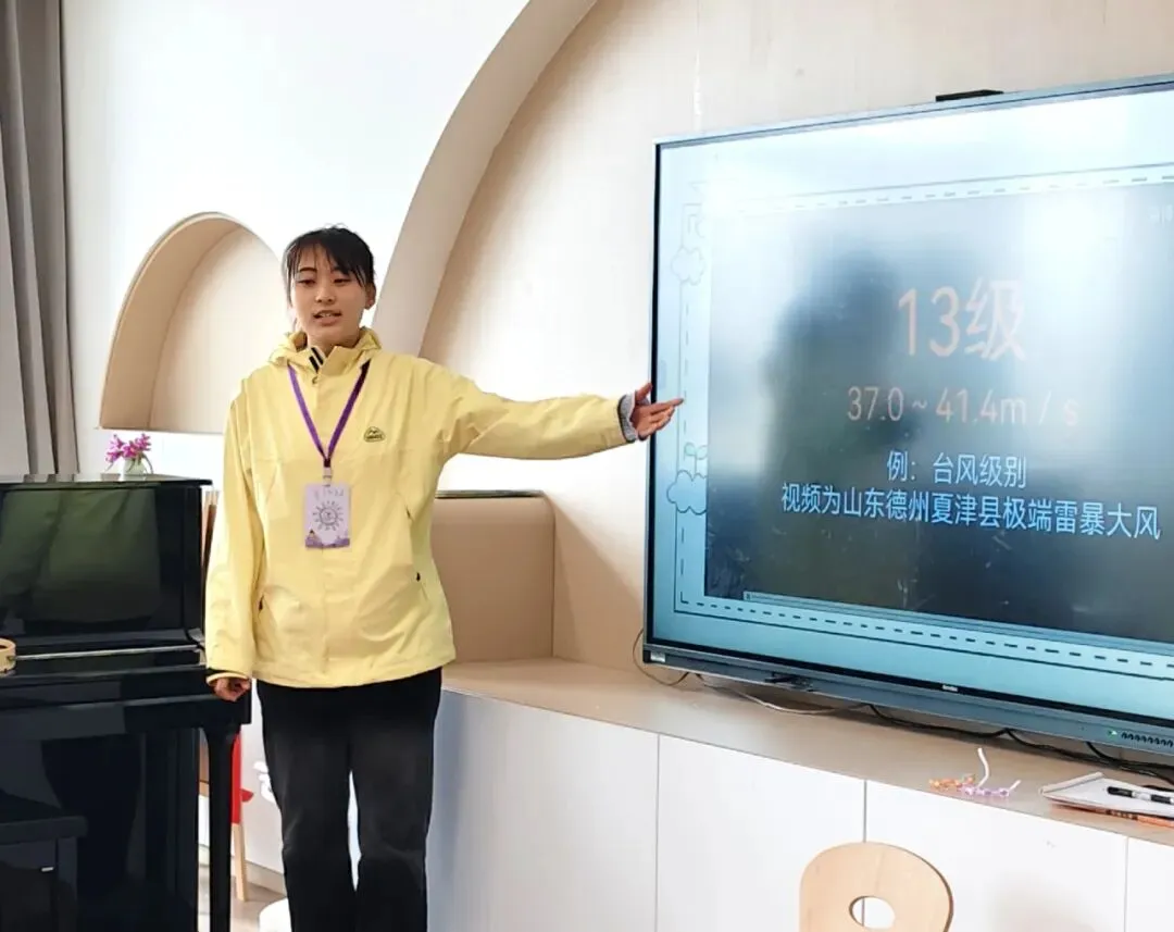 “风,是我们看不见、摸不着,但总能感觉到的朋友。”老师带着孩子们一起走进“风的世界”,认识了从0级到12级的风力等级。孩子们盯着视频里烟囱的烟、摇晃的小树、被风吹得撑不住的伞,眼睛里满是惊奇。“原来风的力量差距这么大呀!”孩子们了解到,当风大于八级时,就要躲到坚固的屋子里,尽量不要出门,同时风越大,出现的可能也越小。