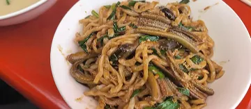 市井烟火不讲大道理,只用一口滋味,就能让你记一辈子。三百碗宝应长鱼面 · 绝对的锅气才能征服人板仓街119号,一家门头朴素得容易错过的小店。老板把宝应长鱼面改良成炒面——鳝鱼当天从宝应运来,新鲜量又足。猛火爆炒,外微焦、内软嫩。每份会送鳝骨汤,汤色奶白,入口便是鲜香。