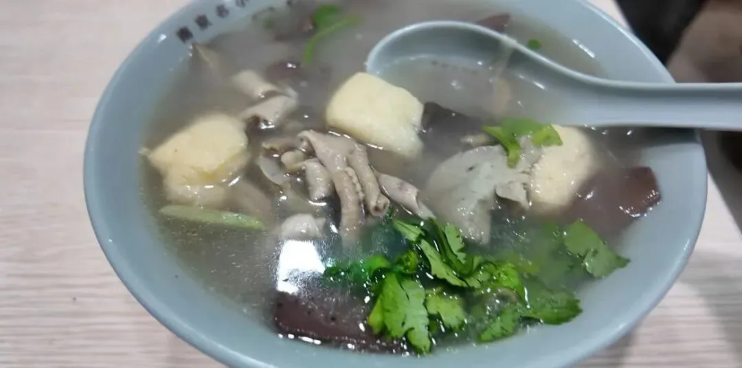 鸭血粉丝汤 · 南京人的续命汤拎着蛋饼再找点稀的,那就是紧挨着他家的锁金村金原总店,附近居民认证了几十年的老味道,客人多到要在街对面摆桌。粉丝汤很鲜,鸭血鸭肠的味道都比较浓郁,可以加锅巴泡着吃,北方人没见过这样的吃法。