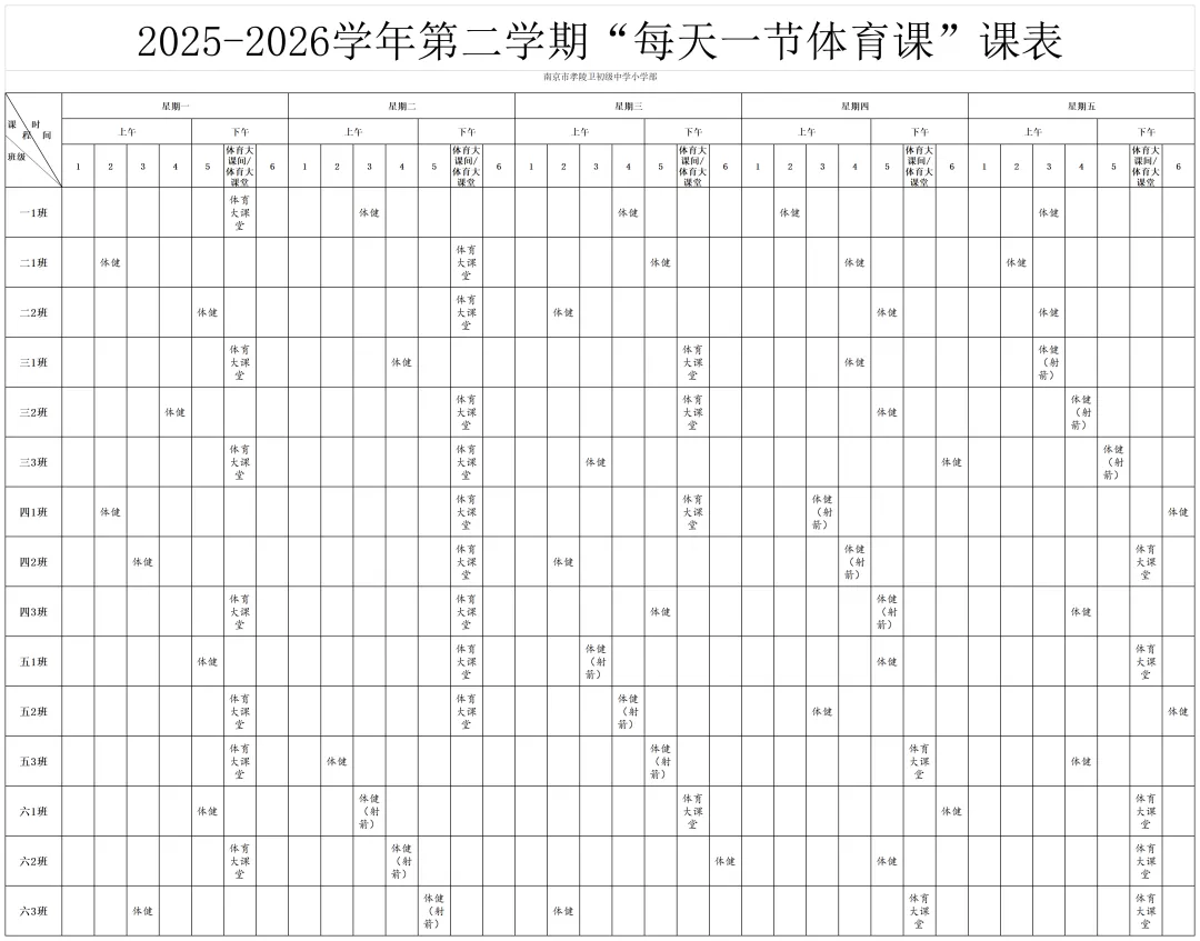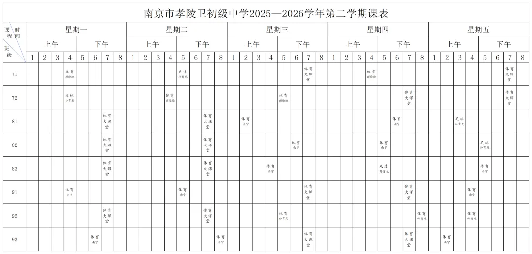 >南京市孝陵卫初级中学《体育与健康》课表公示