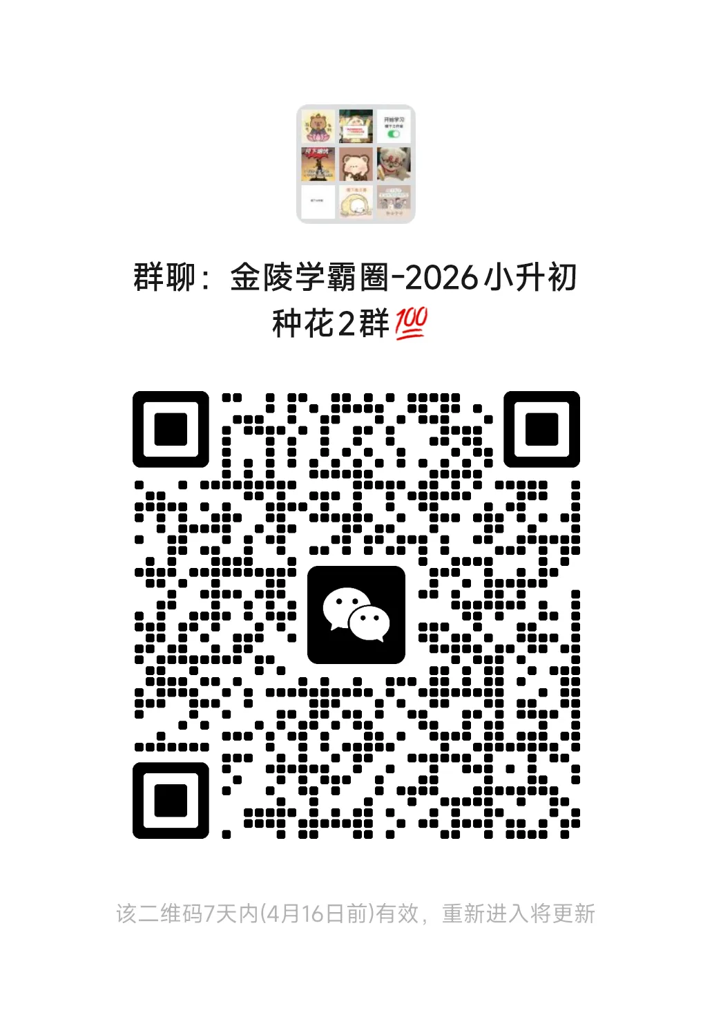 为方便家长第一时间了解南京小升初更多资讯,已建立2026年小升初种花群!扫码进群!