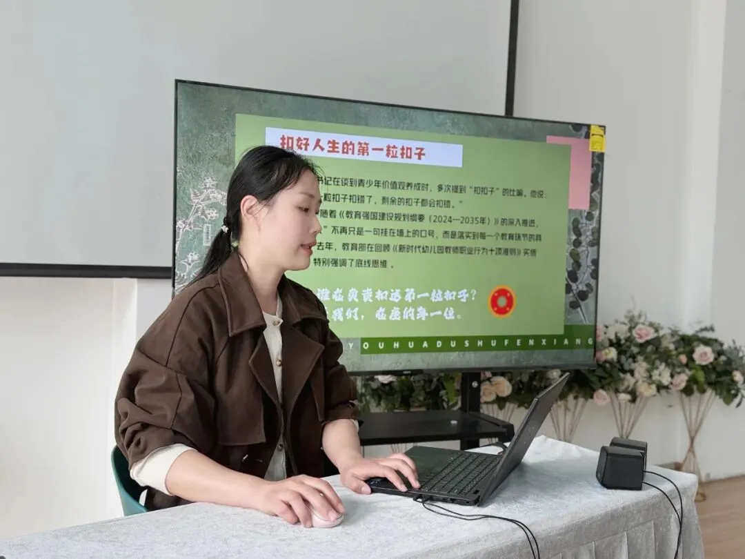 师德师风,不仅是口号,更是底线。曹老师重点解读了《新时代幼儿园教师职业行为十项准则》及《幼儿园教师违反职业道德行为处理办法》。 培训中,曹老师通过“扣扣子”的比喻强调:如果第一粒扣子扣错了,剩余的都会扣错。教师的一言一行,都是孩子认识世界的模板。“温柔而坚定”,才是建立秩序与安全感的正确方式。 为了让老师们警钟长鸣,曹老师还结合《学前教育法》,对近年来的典型案例(如体罚、言语伤害、网络不当言论等)进行了深度剖析,明确了“什么不能做”,让每一位老师都深刻意识到:红线不可越,底线不可破。
