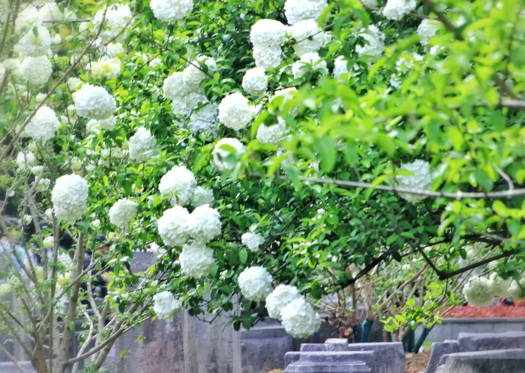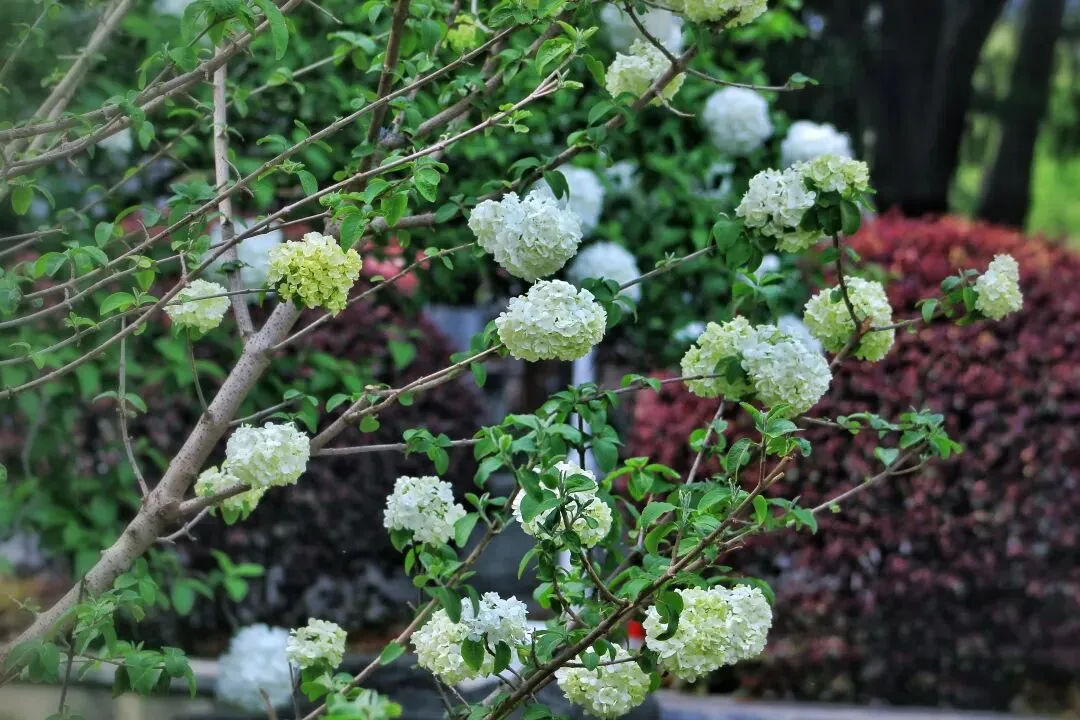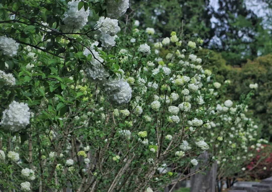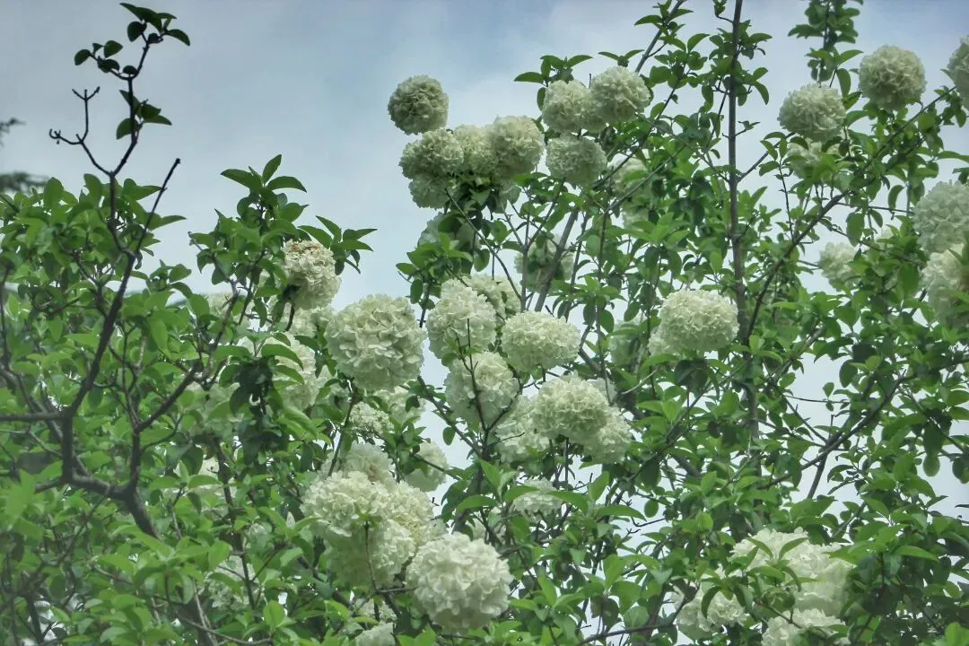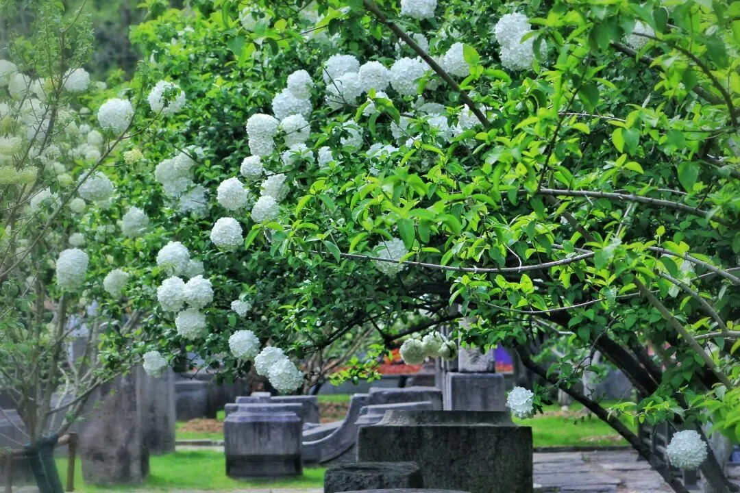 中华木绣球自古为庭院雅卉,与古琼花同源,被文人视作高洁自持、团圆守正的精神意象。花球浑圆簇生,喻美满团聚;素白清绿,藏圣洁与希望,是东方独有的春日图腾。