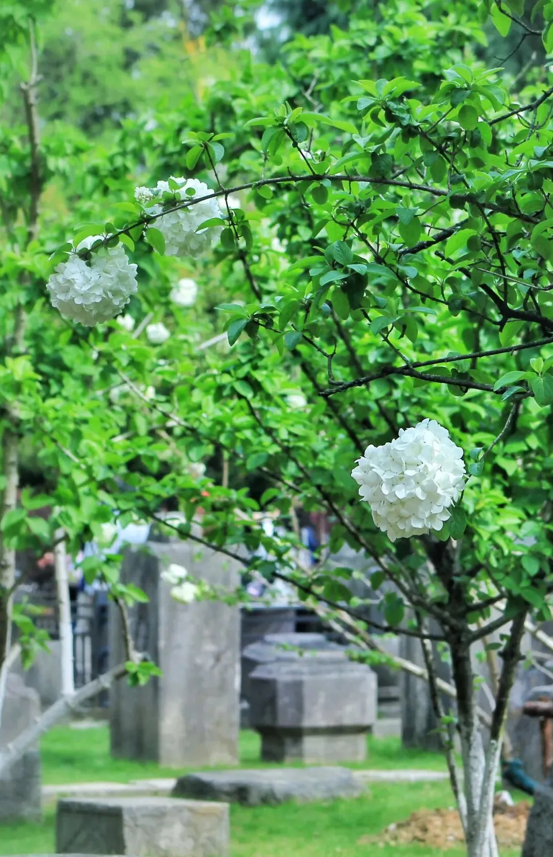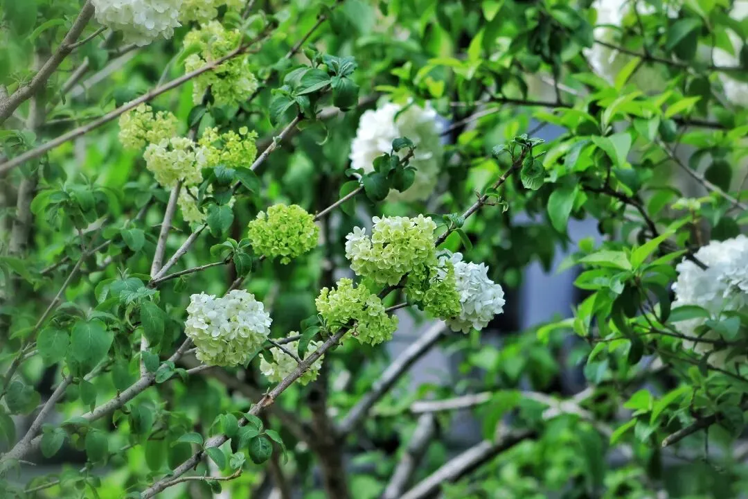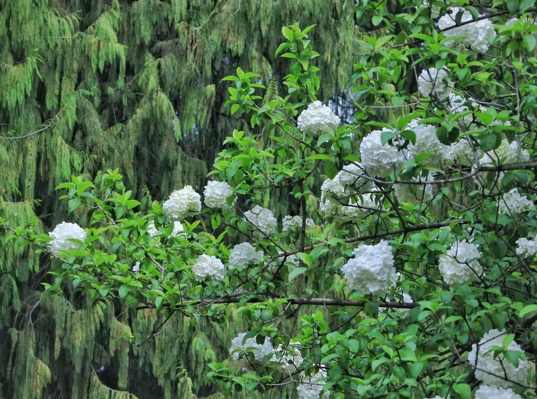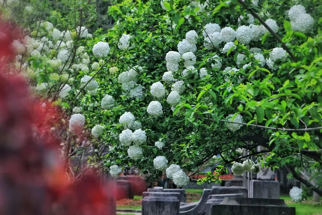 中华木绣球自古为庭院雅卉,与古琼花同源,被文人视作高洁自持、团圆守正的精神意象。花球浑圆簇生,喻美满团聚;素白清绿,藏圣洁与希望,是东方独有的春日图腾。